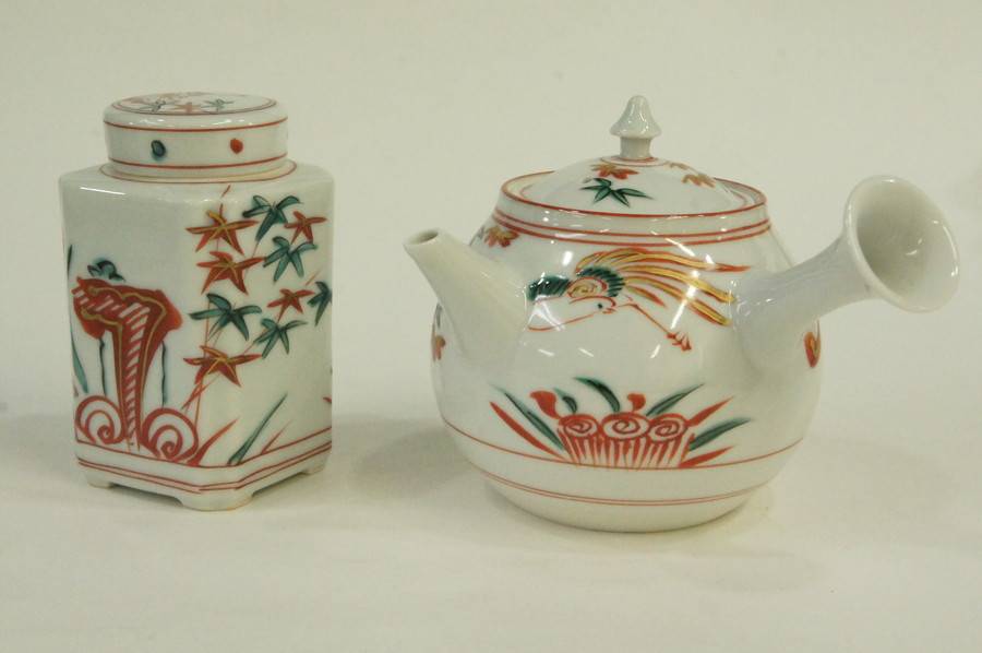 ●京焼 三代井上春峰 赤絵 急須 茶入 2点セット