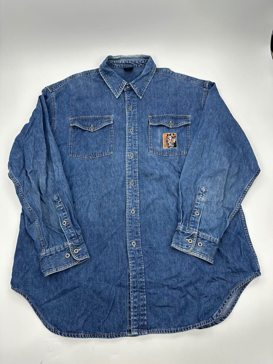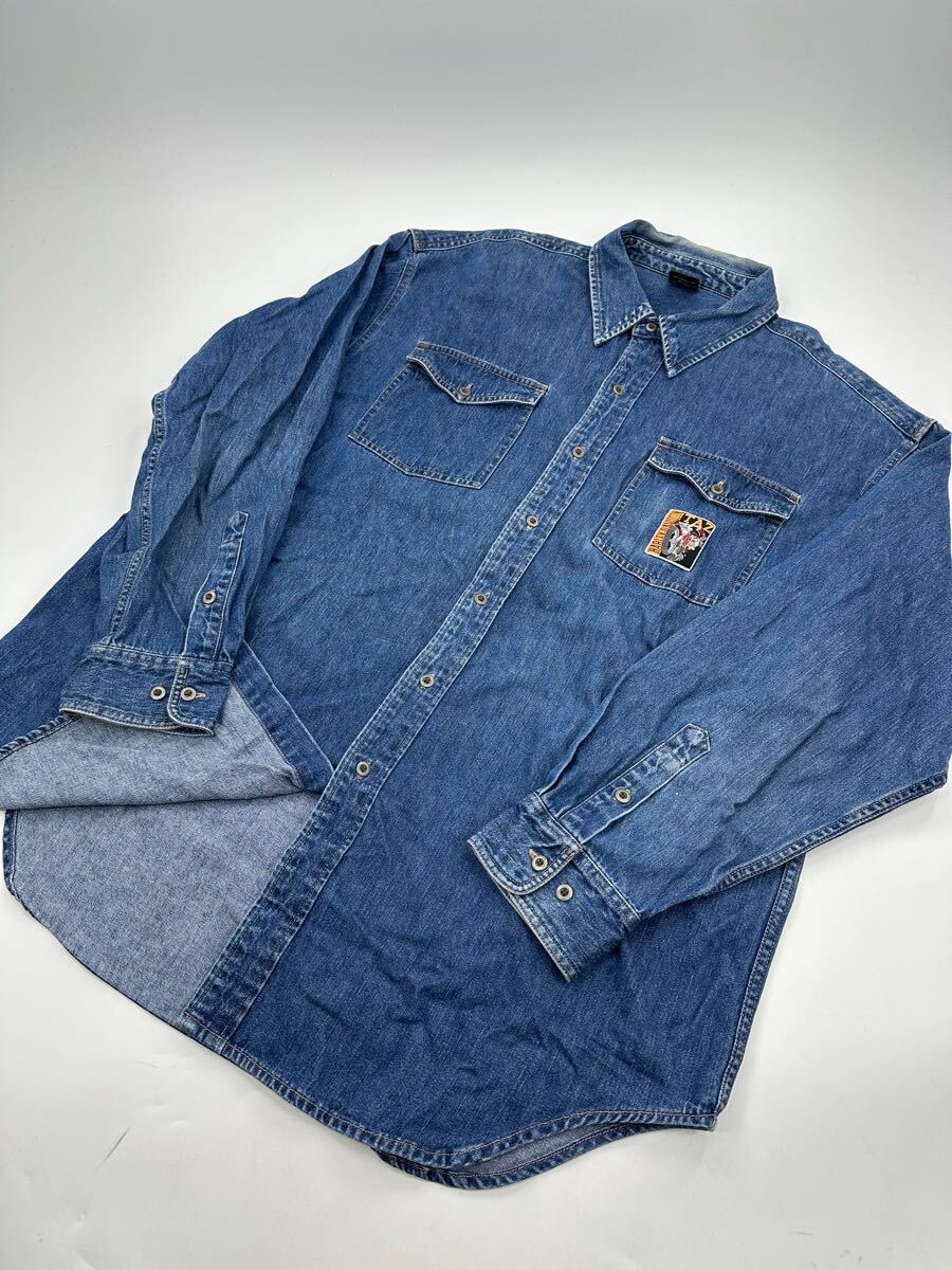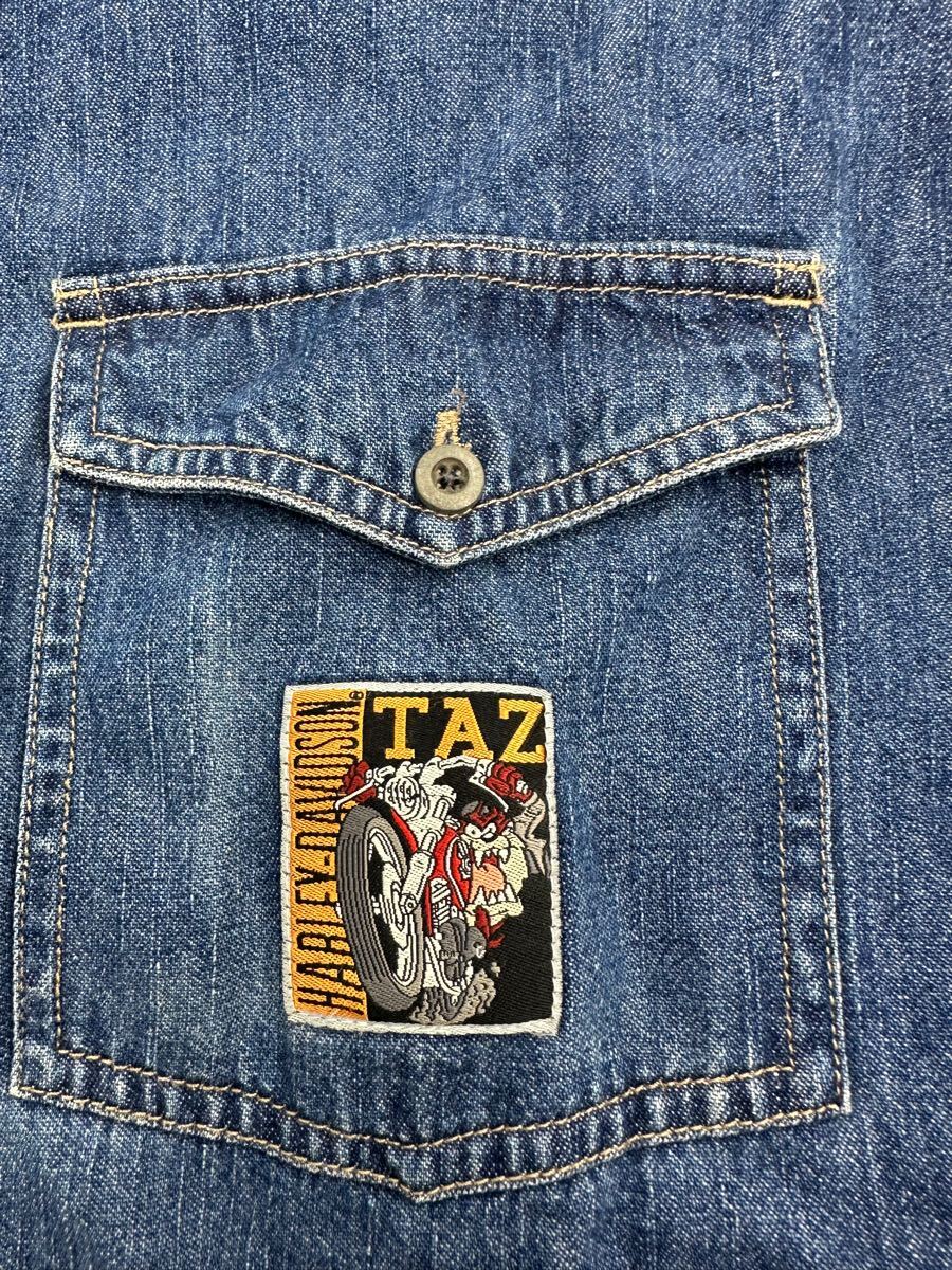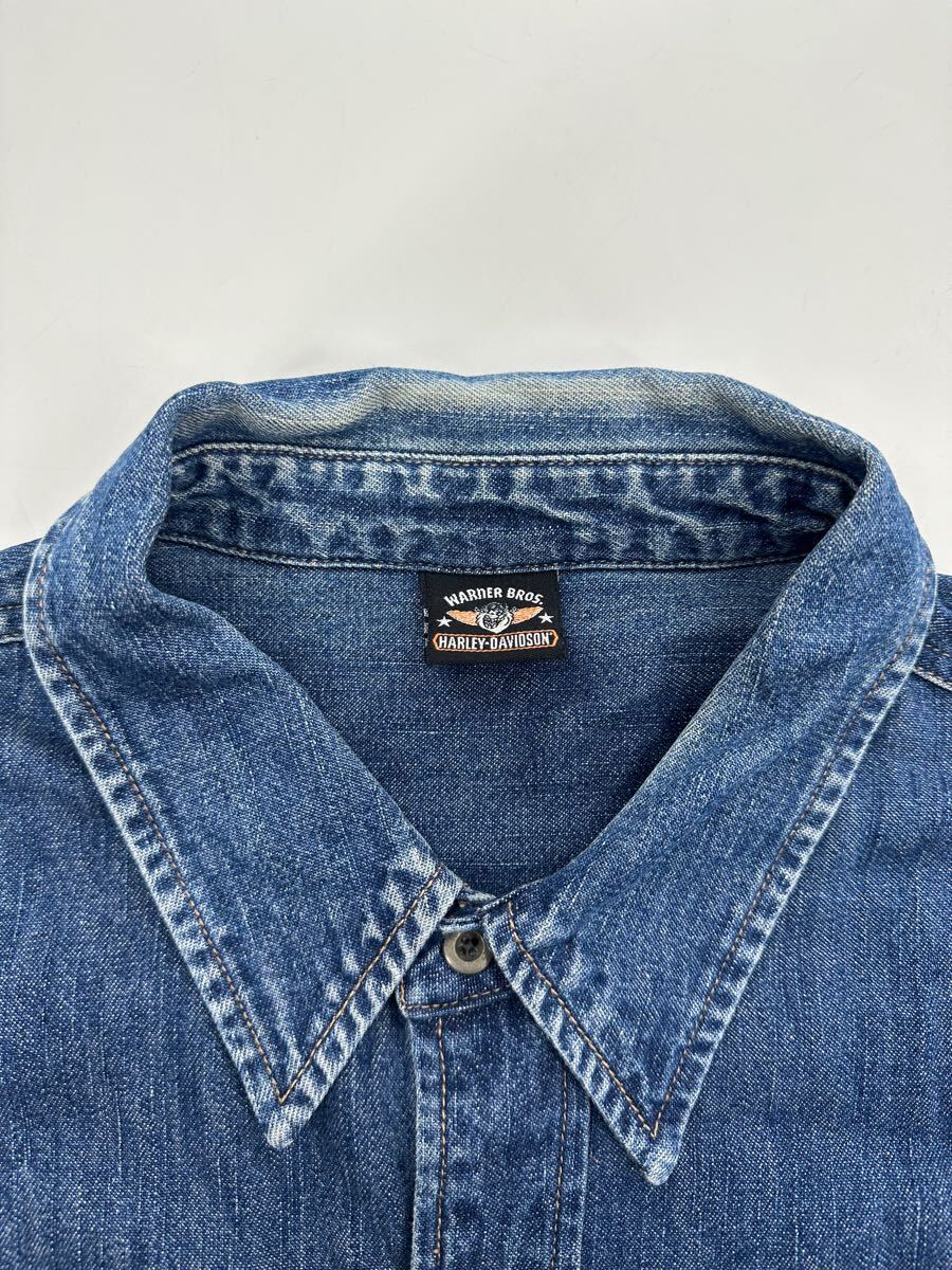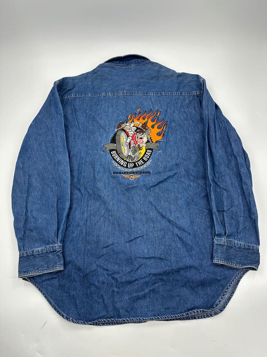 希少/ヴィンテージ 00s/HARLEY DAVIDSON × ワーナーマイカル/デニム シャツ/ハーレーダビッドソン コラボ ファイヤー 收藏