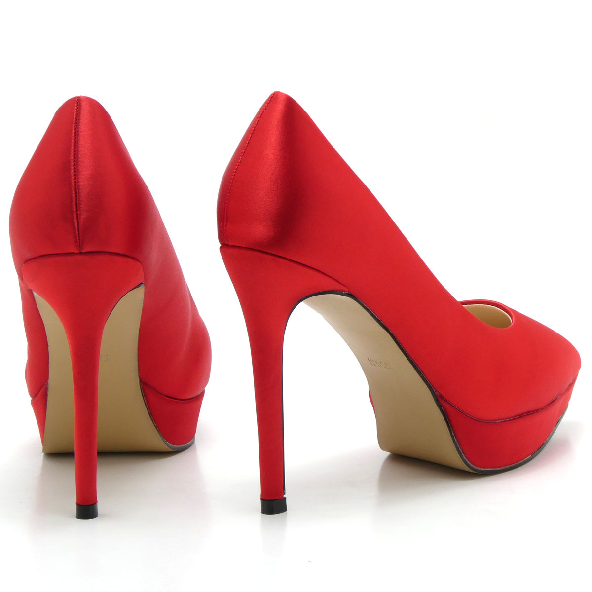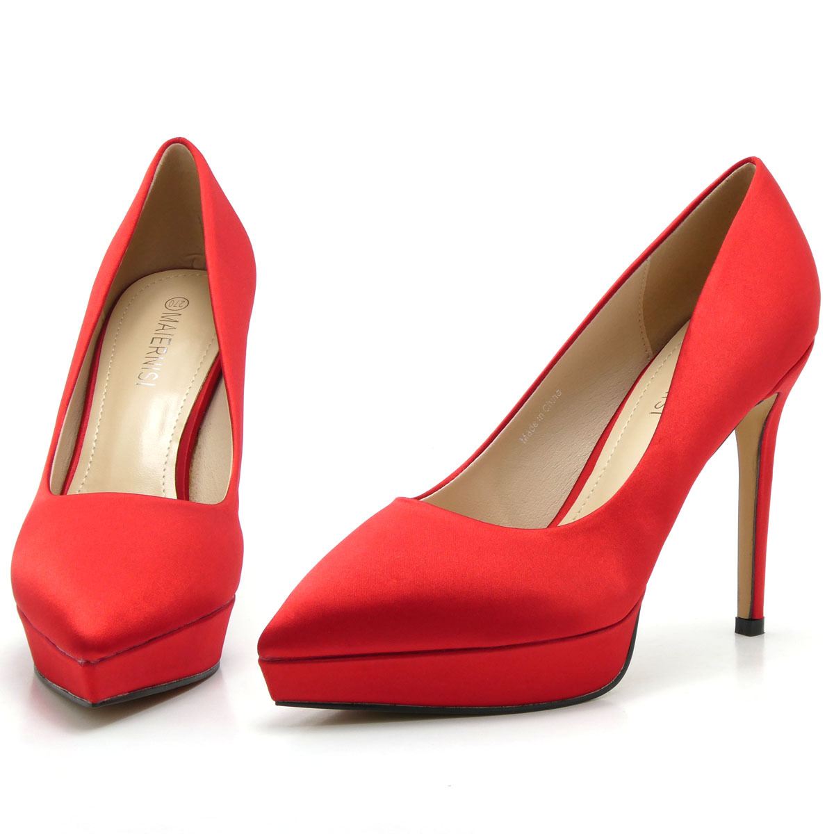 新品 大きいサイズ パンプス レッド 28cm 131409-46 サテン素材 前厚底ストーム ハイヒール 收藏
