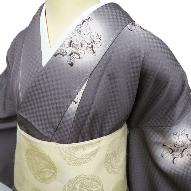 丈161cm(+14) 裄66cm(+3.5) 袖丈48.5cm(+5) 前幅24cm 後幅28.5cm ※サイズのお直し、承ります。 (身丈のみ、身幅のみのお直しは承っておりません) ※身丈は肩から測っております。 ※()内は※()内の数字はお直しで直せる長さを示しています。お仕立て直しの場合は胴裏を付け替えるため、さらに長く直せる場合があります。詳しくはお問い合わせください。 単位:cm 素材 正絹 商品ランク A ●着用時期 10月~5月(+-2週間) ●着用シーン 観劇、ご友人との食事、お買い物など ●お色 煤色 多色 未使用の美しいお品物です。 写真に写っている着物のみの販売で、帯等の付属品はついておりません。 一部商品は実店舗・他サイトでも並行して販売しておりますので売り切れの際はご了承ください。 その他多数販売中 ru- | ||||||