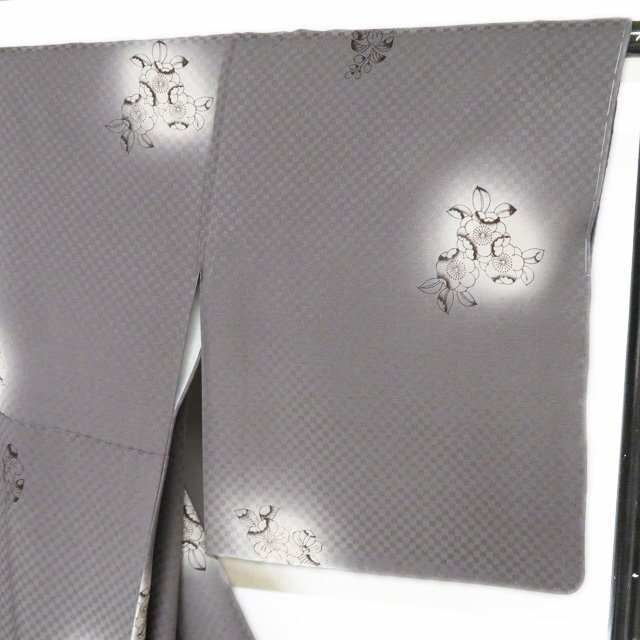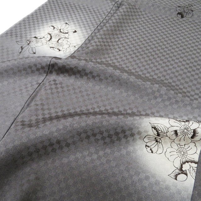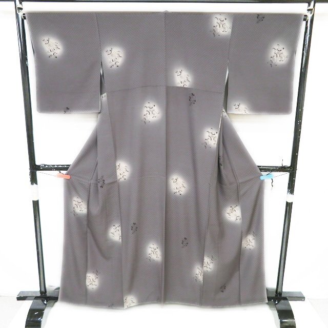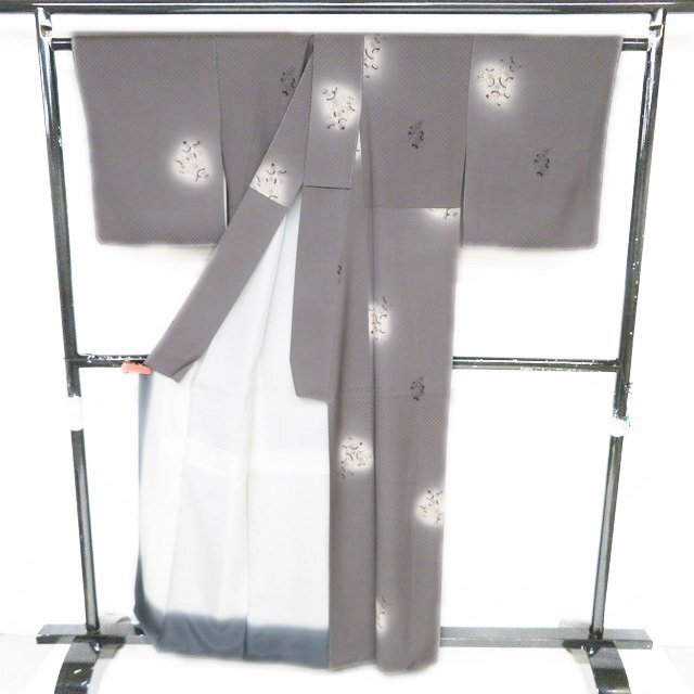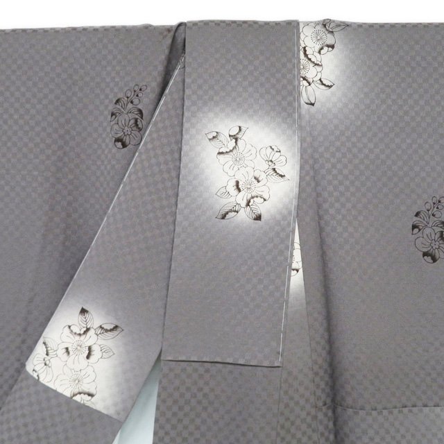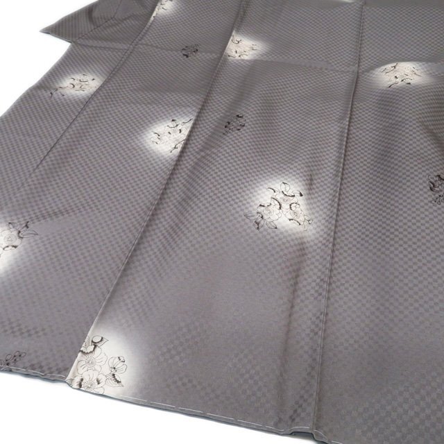 小紋 着物 未使用 正絹 袷 花模様 辻が花模様 地模様 市松 暈し 煤色 多色 身丈161cm 裄66cm M きもの北條 A1183-9 收藏