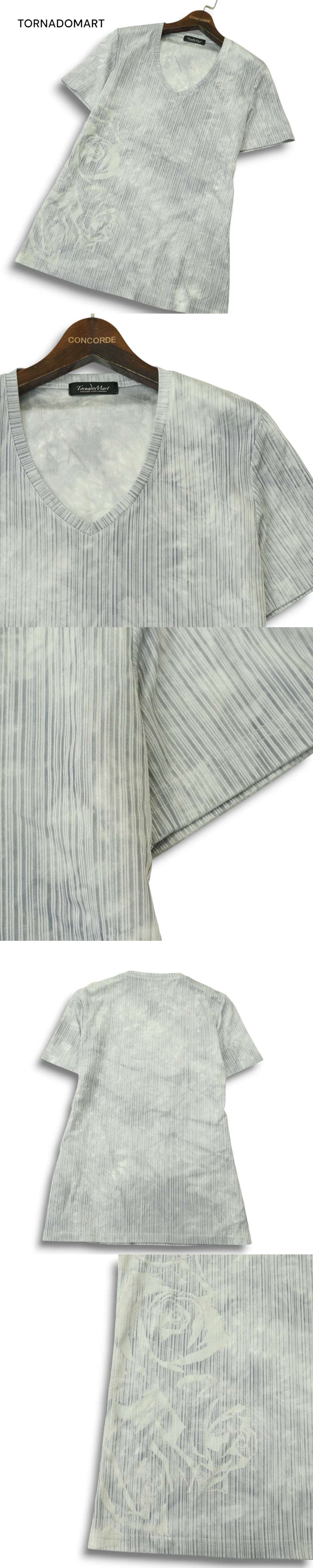 TORNADOMART トルネードマート 春夏 タイダイ風 薔薇 ローズ プリント★ ストライプ 半袖 Tシャツ カットソー Sz.M メンズ A5T04202_4#D 收藏