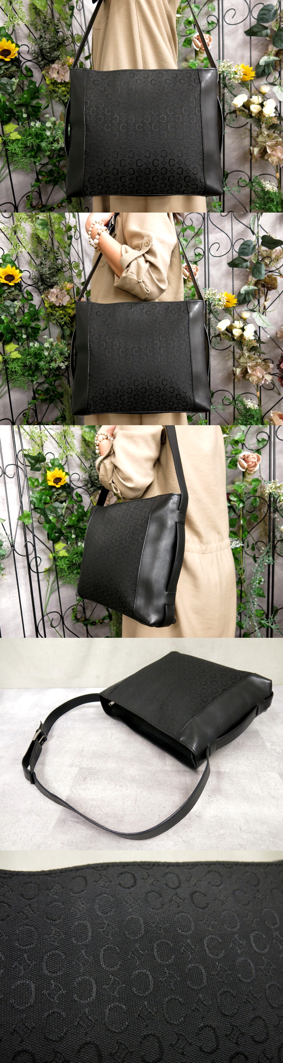 ●超美品●CELINE セリーヌ●Cマカダム●キャンバス カーフ レザー 本革●ショルダー バッグ●黒●シルバー金具●B5 収納 かばん●Js57296 收藏