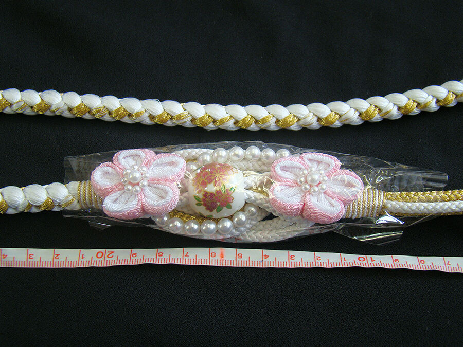 時代屋 新品 振袖用 白地 飾り付き 帯〆 正絹 未使用 B615 收藏