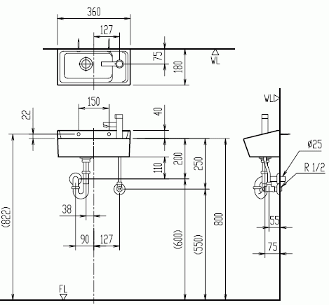 L-A35HC コンパクトな壁付手洗器 角形タイプ LIXIL(リクシル) 給排水位置変更出来ます。 收藏