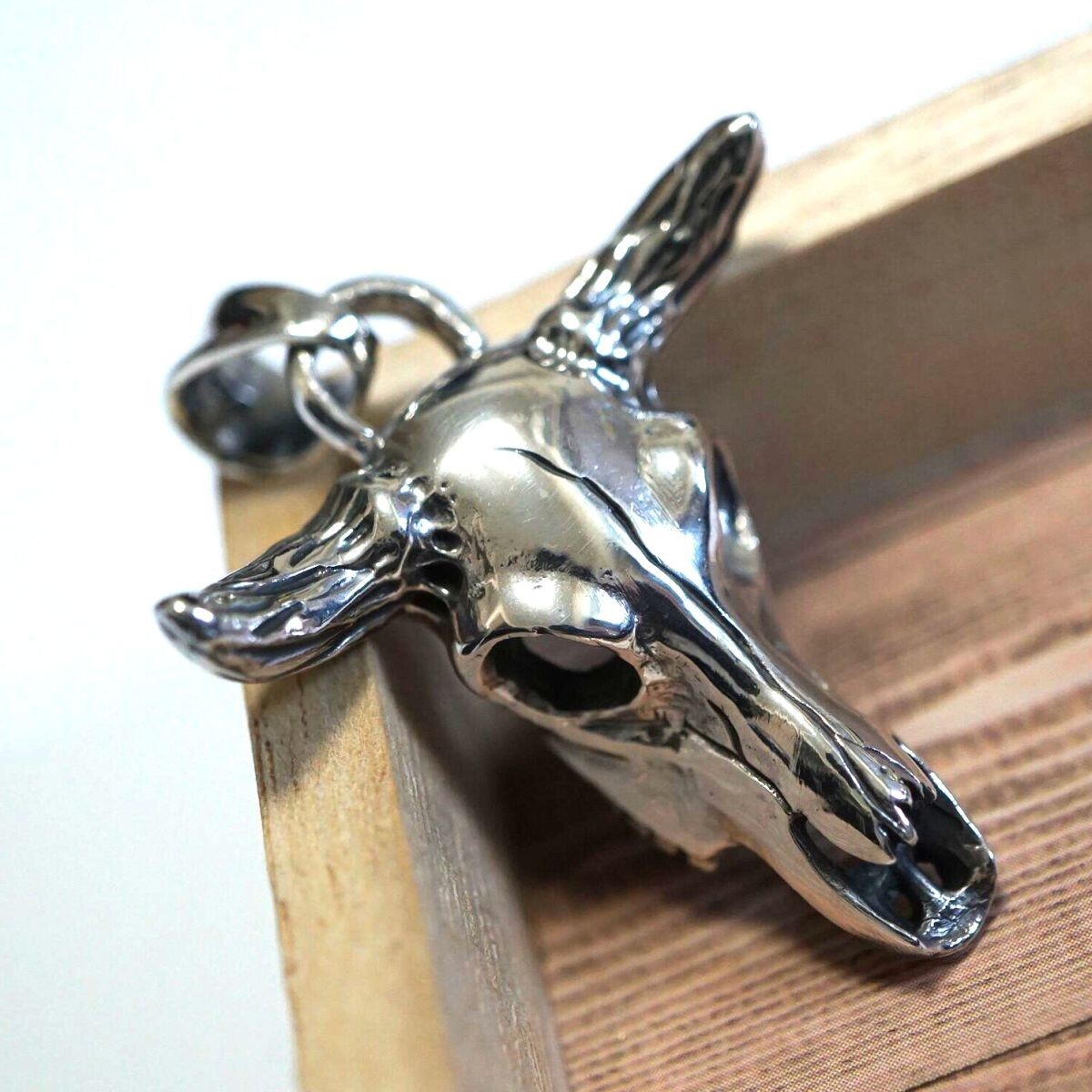 シルバー976 ネックレス ペンダント アクセサリー インディオ アメリカ 髑髏 水牛 新品 迅速配達 チェーン付きS0460 收藏