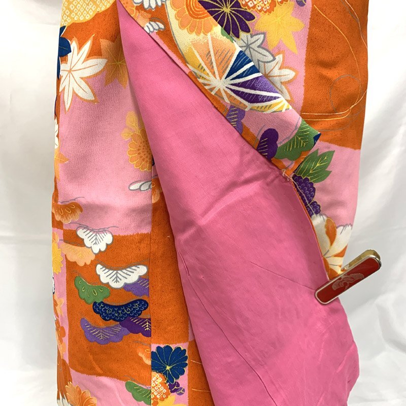 | ■セミアンティーク ベビー着物&おまけ兵児帯 双子■状態良好 (No.n) こちらの商品は着物とおまけでお付けしている兵児帯です。その他、ベレー帽や付け衿などの小物はセットに含まれません。淡いオレンジの地にカラフルな文様が大変モダンで可愛らしいお着物セットです。両方とも中綿が入っている中綿着物です。 0歳から1歳、また体格や身長にもよりますが丈を短く着付けてブーツと合わせて2歳までご利用いただけます。また、 お正月やお節句にいかがでしょうか? (着物)(着物A)右外袖にシミがございますが、地のお色が濃いため、あまり目立ちません。(着物B)左右付紐が解けている所がございます。使用感はございますが、目立つダメージはございません。 (長襦袢)こちらには長襦袢が付属いたしません。代わりにお子様の負担が少なく便利な「子ども用楽々衿」をお勧めします。#ag楽々衿 【表地素材】(着物)正絹 【色】淡いオレンジ *モニターによって色味は実際と異なる場合がございます。 【サイズ】(着物A) 裄:35cm、肩上げ:0cm、袖幅:18cm、袖丈:21cm、丈(肩から):72.5cm、腰上げ:0cm、前幅:15.3cm、後幅:16cm (着物B) 裄:38cm、肩上げ:0cm、袖幅:21cm、袖丈:21cm、丈(肩から):74.2cm、腰上げ:0cm、前幅:15.5cm、後幅:16cm *素人採寸のため、多少の誤差はご容赦ください。 お求め安い価格での出品ですので、いかがでしょうか? | |