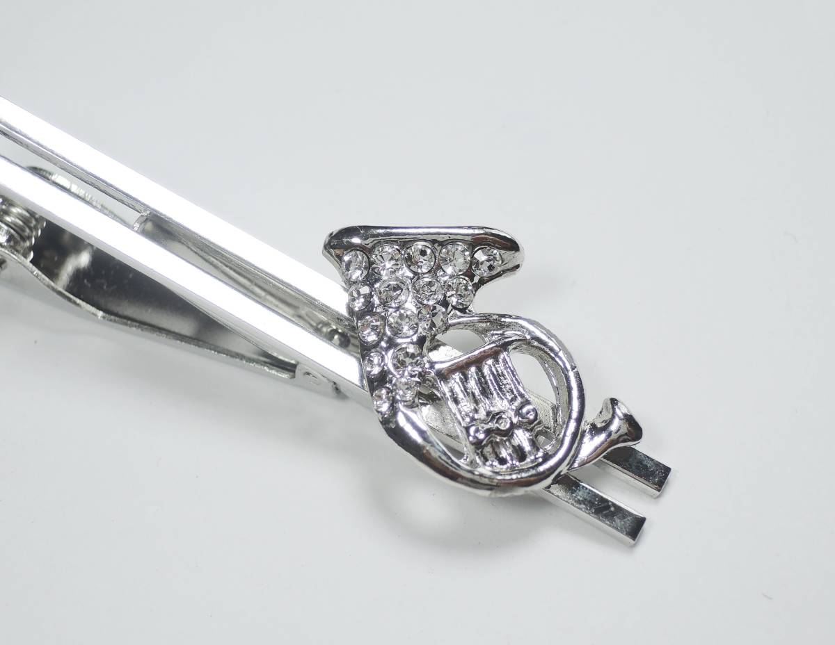 ●スワロフスキー・ホルンネクタイピン●新品・即決 音楽 楽器 音符 譜面 作曲 作詞 クラシック ジャズ ロック スイング 歌謡曲 收藏