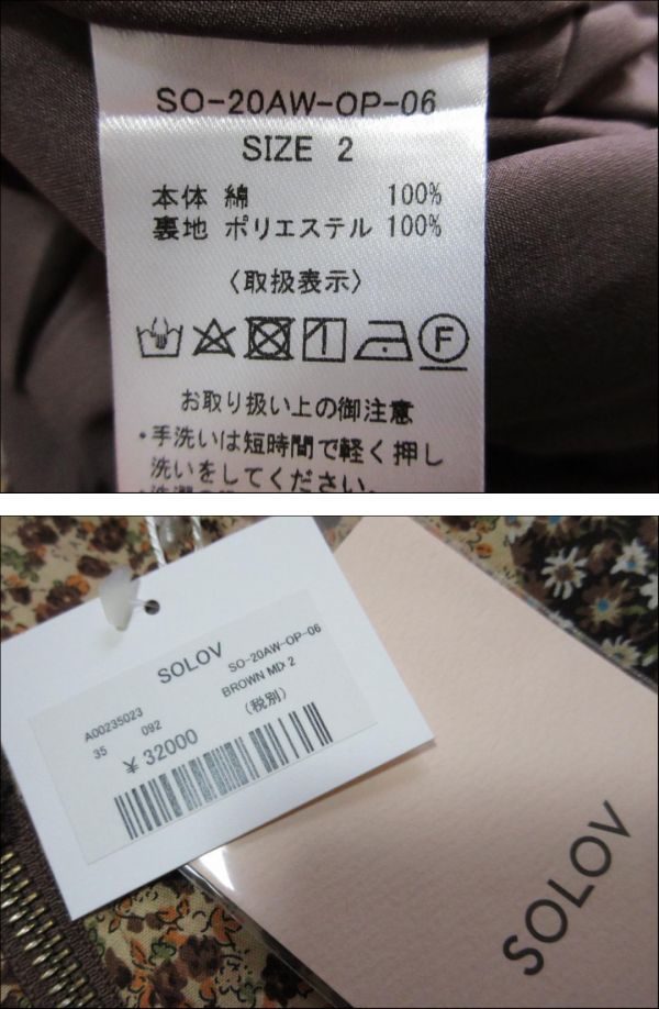 商品説明 | 1.未使用 SOLOV ソロヴ 長袖 ワンピース サイズ2 ブラウン系 花柄 コットン SO-20AW-OP-06 です。 |
