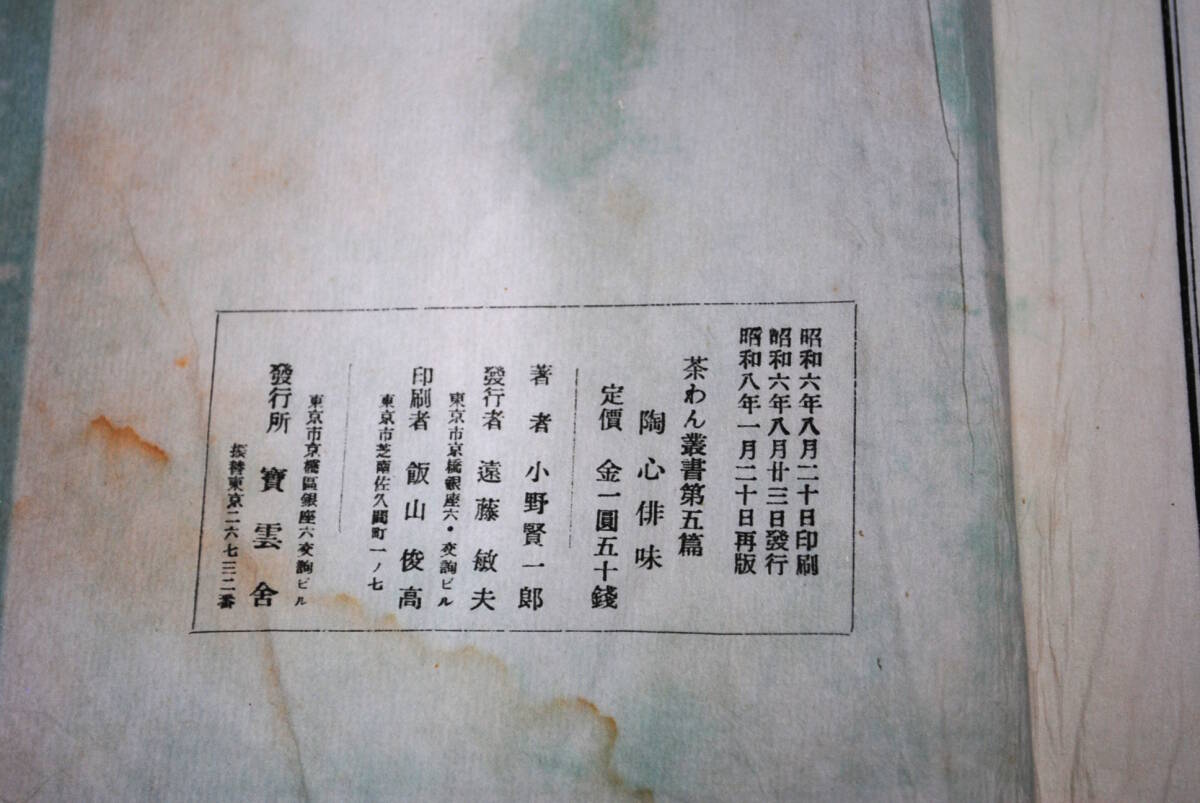 【売切り屋】陶心俳味 小野賢一郎 茶わん叢書第五篇 昭和8年再版 寶雲舎 古書和本