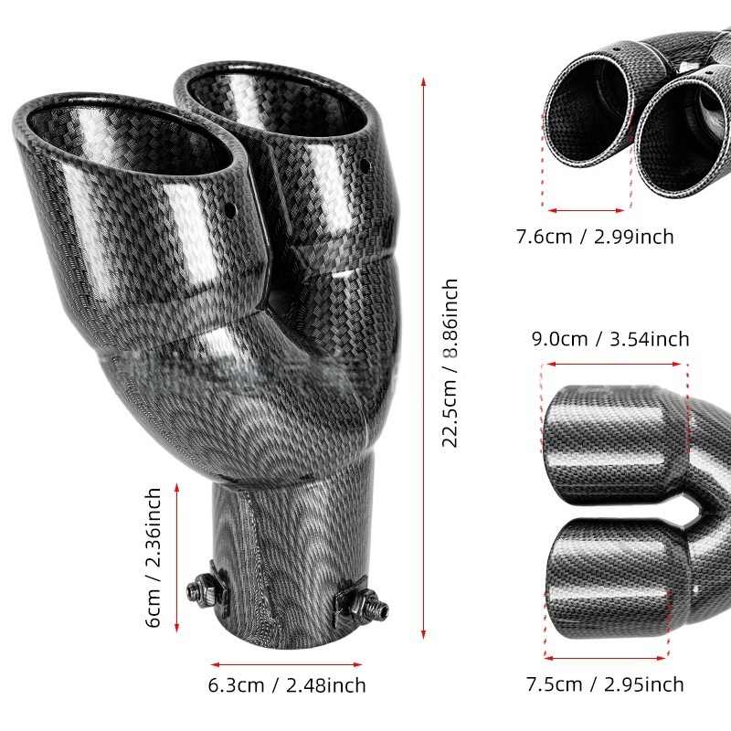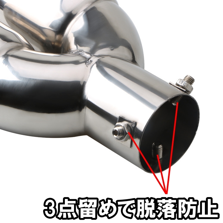 | 商品内容 汎用マフラーカッター 特徴 ・装着可能マフラー外径:38mm~58mm ・数量:1個(※両サイドマフラーの場合は2点お買い求めください) ・出口数:2(デュアルタイプ) ・形状:斜め ・材質:全タイプステンレス製になります ・選べる4カラー:シルバー/チタンブルー/ブラッククローム/ブラック ※チタンブルーは色合いに個体差があります 適合確認 ※タイトルにある車種は参考車種になります。 ※タイトルにある車種でも排気量やグレードによって マフラーの外径やリアバンパーの形状が異なります。 必ずマフラーの外径とリアバンパー形状 及び商品の寸法をご確認ください。 取付に関する注意事項 ・専門業者様による取付を推奨しております。 ・火傷防止のためマフラーが冷えた状態で作業してください。 ・脱落防止のため定期的に増し締めしてください。 ・取付、使用に関わるケガ、事故等につきまして 弊社は一切の責任を負いかねます。 |