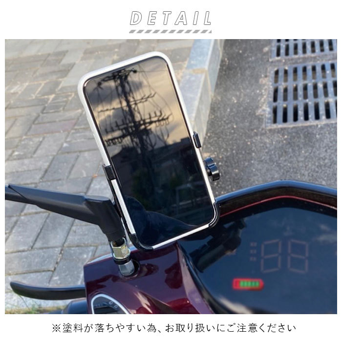 | 商品説明 | ・高強度&簡単取り付け!バイクやロードバイクのフロントをスタイリッシュに彩る「スマホホルダー」が新登場。 ・バイクやロードバイクのような競技用自転車のハンドルに取り付けることで、スマホをバイク用ナビとして活用できる、高強度アルミ合金製スマホホルダー。 ・横幅:約5.8cmから約9.0cm、厚み:約1.1cmまでの一般的なサイズのスマートフォンに対応。両サイドのスクリューノブを回転させるだけで、カバー付きのスマホでも取り付けが簡単。(※カバーの種類によっては取り付けができない場合もございます。) ・ホルダーのアーム部分は、付属のシリコンパッドシールが衝撃や振動を和らげ、大切なスマホをソフトにホールド。(※シリコンパッドシールは、お客様ご自身で取り付けていただくスタイルです。) ・4か所のアームでスマホを支える構造なので、充電ケーブルやイヤホンケーブルの接続を妨げずに使用できるのも嬉しいポイント。 ・スマホホルダーの角度は、12段階に360度自由調節が可能。バイクハンドルへの取り付けは、付属の六角レンチ1本でネジを調節するだけで誰でも簡単! ・走行中の視界を遮らず、スマホをしっかりと固定することで、ツーリングやサイクリングがより安全・快適に。 |
