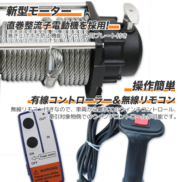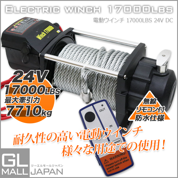 無線モコン付き 電動ウインチ DC24V 最大牽引17000LBS(7711kg) 電動 牽引 ウインチ 移動 運搬 巻き上げ 收藏