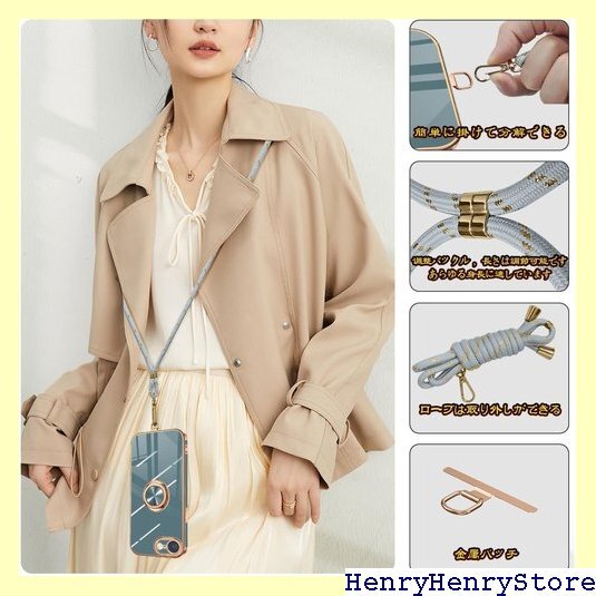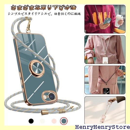 iPhone 16e ケース ショルダー リング付き ックストラップ 長さ調整可能 取り外し可能 グレーブルー 2730 收藏