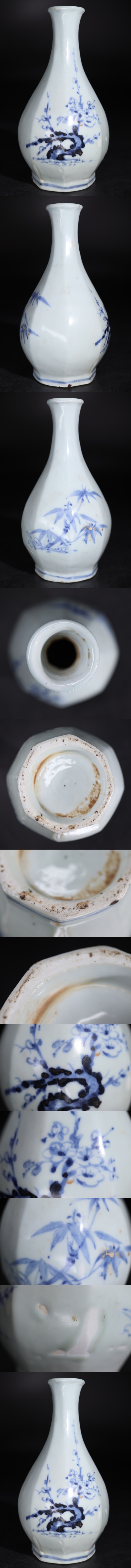 染付 梅花 ・ 竹文 面取 徳利 李朝 / 酒器 茶器 煎茶道具 検索: 初期伊万里 .G2377 收藏