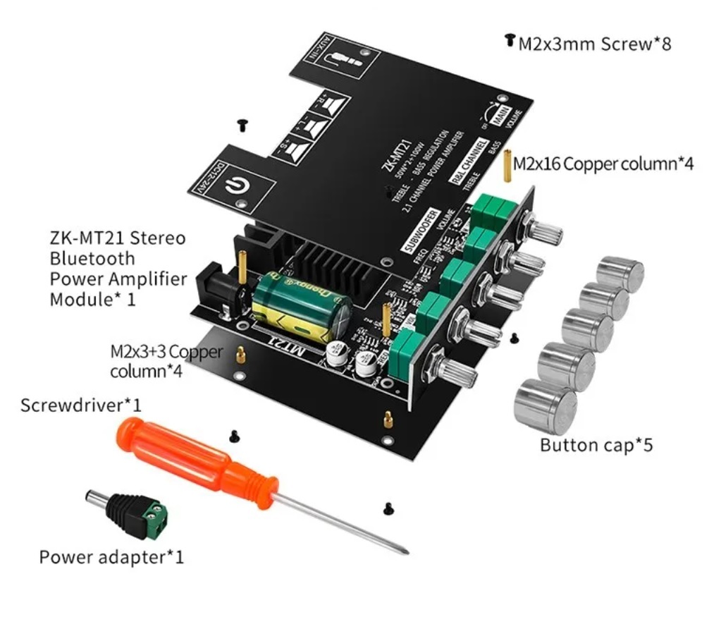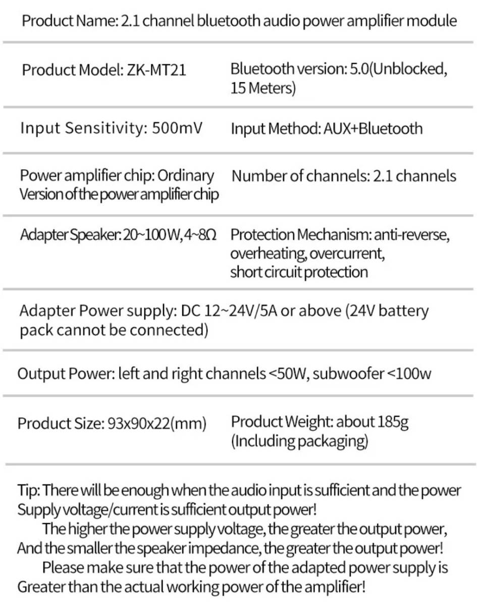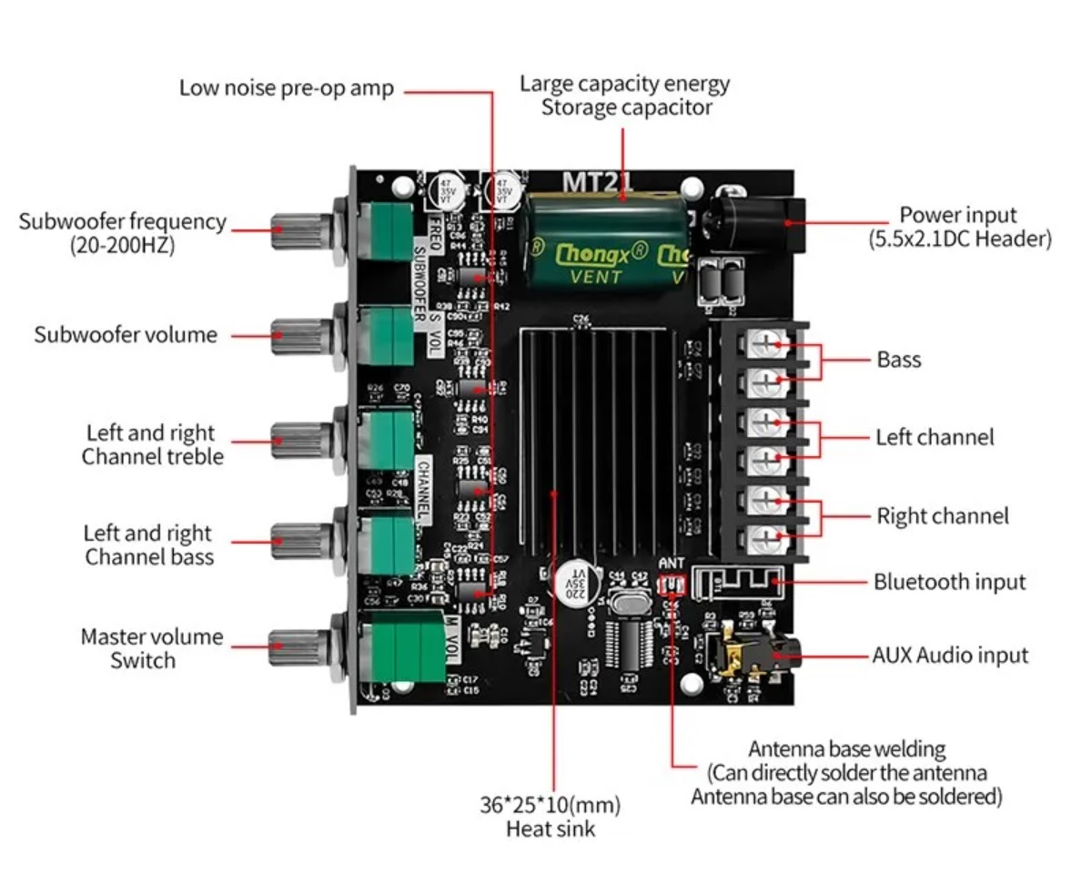 PCBシャーシ付 ZK-MT21 Bluetooth 2.1ch パワーアンプ基板 最大50W+50W+100W DC12V/8Ω DC24V/4Ω 收藏