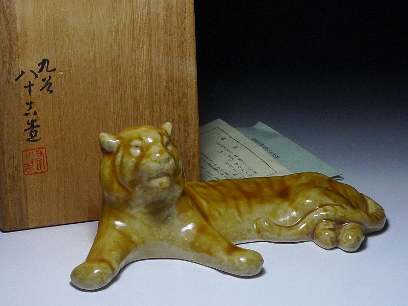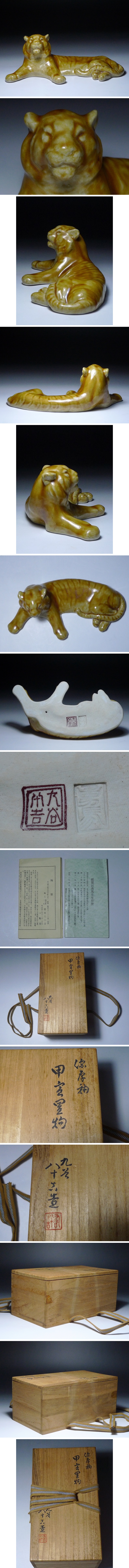 80KK102★九谷焼 徳田八十吉造 深厚釉 甲寅置物 虎 干支 都賀田勇馬 陶器 共箱 置物 骨董品 收藏