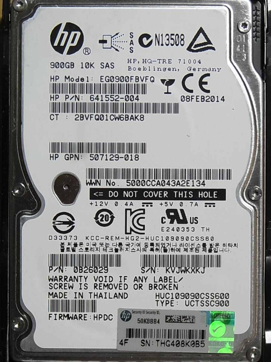 HP Proliantサーバ用マウンタ付き、2.5インチ 900GB/10K/SAS 6Gb HDD、