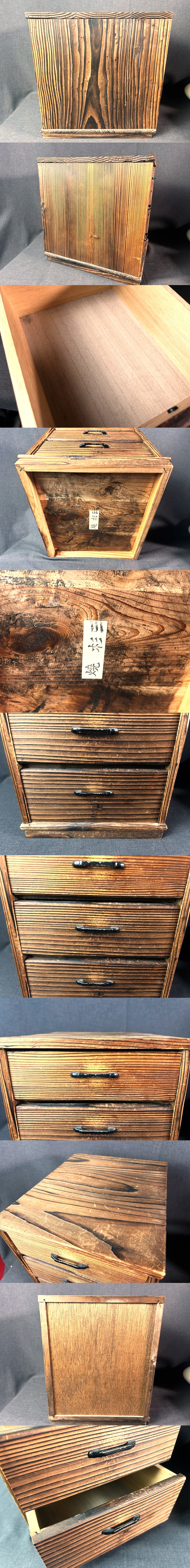 焼杉 3段 卓上小物入れ 引き出し棚◇木製/ミニチェスト/抽斗/小箪笥/和家具/インテリア/収納/木工芸/民藝/古民具/古道具 收藏