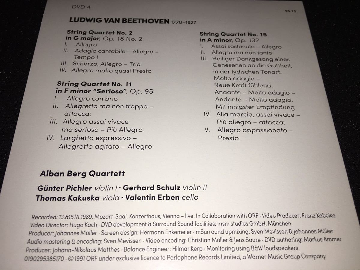DVD アルバン・ベルク四重奏団 ベートーヴェン 弦楽四重奏曲 2番 11番 15番 セリオーソ ライヴ 後期 未使用美品 Beethoven Alban Berg 收藏