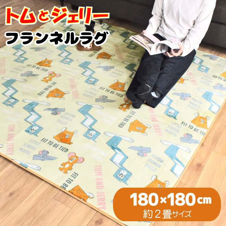 ラグ キャラクター ラグマット カーペット 2畳 約180×180cm おしゃれ かわいい 滑り止め付き トムとジェリー イエロー 收藏