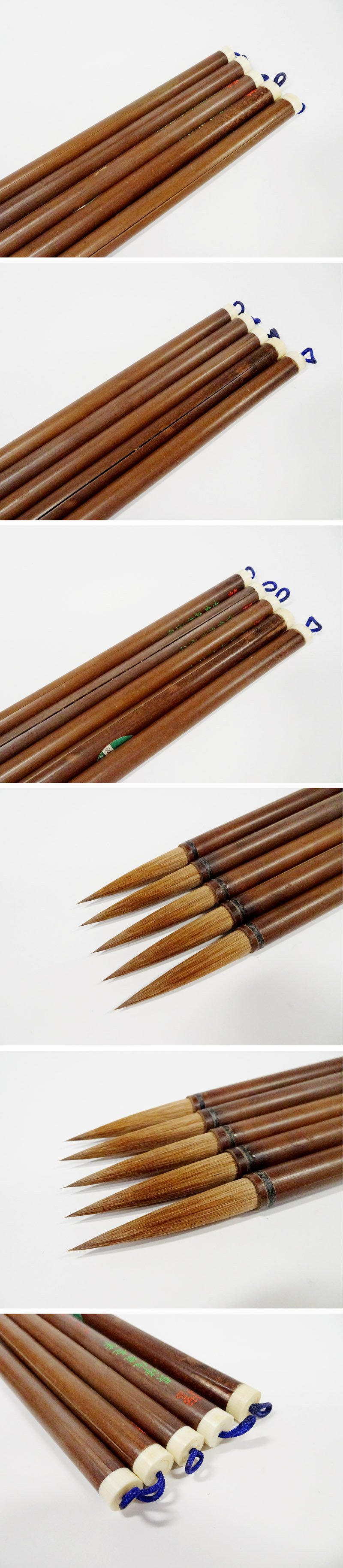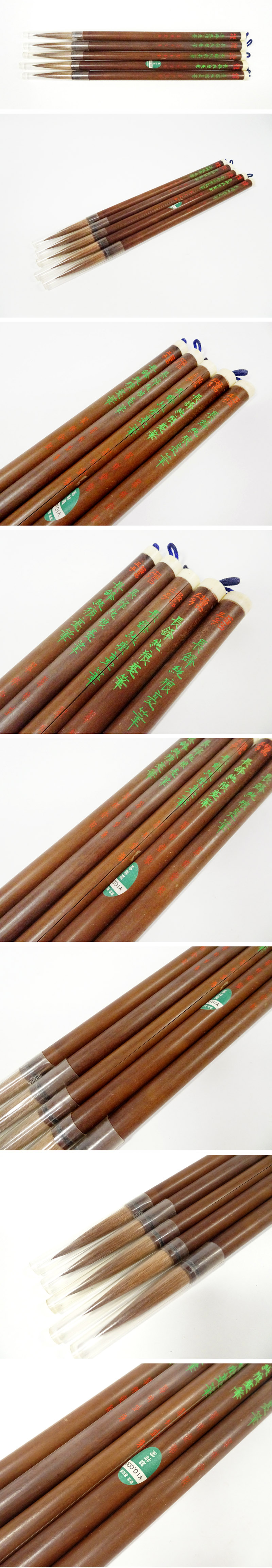 【敬逢】秀逸 書道具 翠祥堂製 長鋒純狼毫筆 極品三号 高級イタチ 鼬 毛筆 5本組 定価1本 10,000円 未使用品 端渓硯老坑古墨 10 收藏