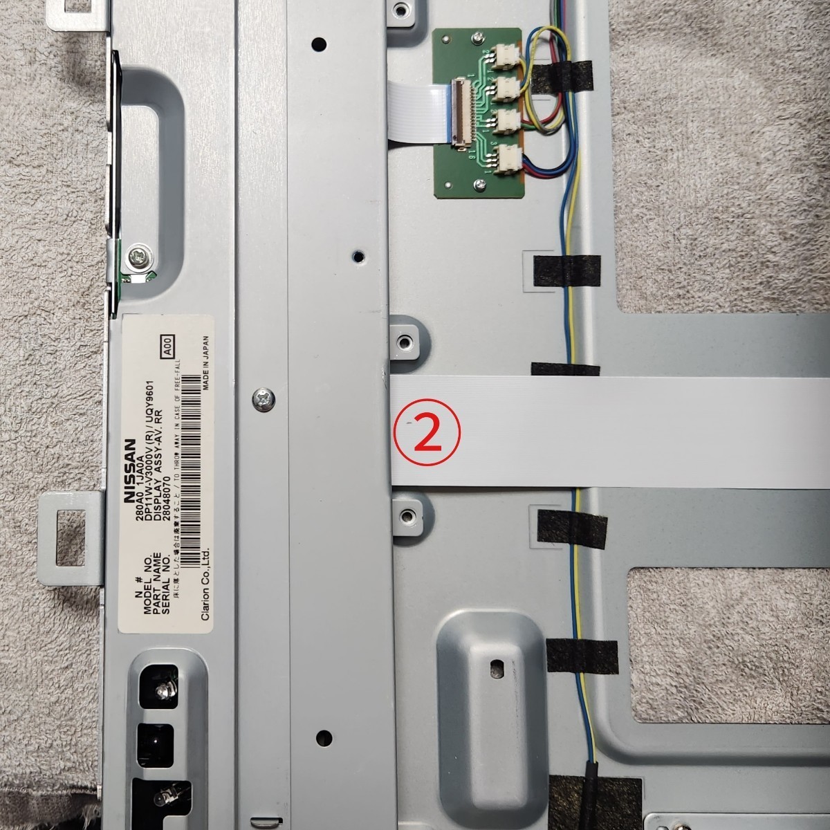 リモコンやナビ本体でフリップダウンモニターの開閉は出来るが映像が映らない方、開閉も出来ない方はフレキシブルケーブルの断線が原因かと思われます。