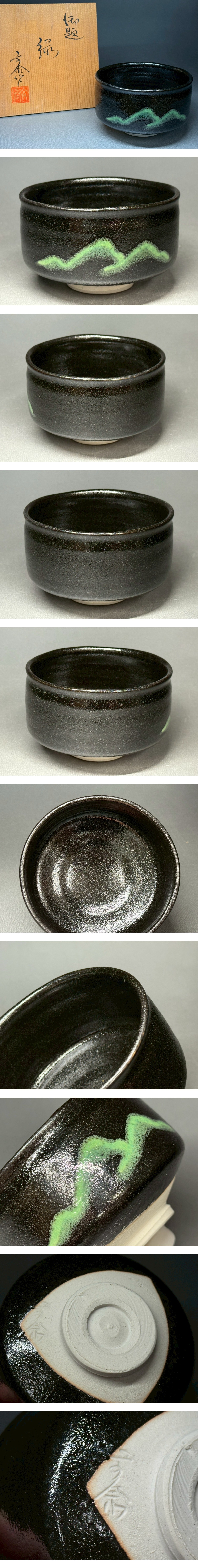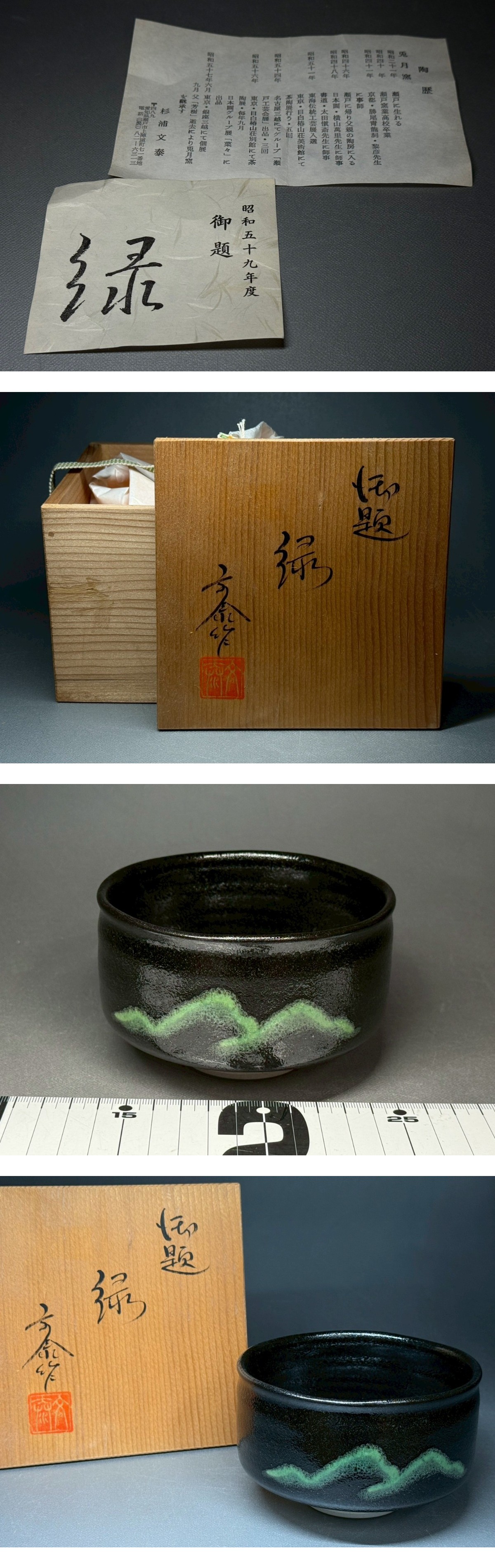 瀬戸焼 兎月窯 杉浦文泰 作 御題 緑 茶碗 栞 骨董 置物 飾物 日本伝統工芸品 芸術 古美術 茶道具 茶器 時代物 初出 売切 長崎買取53 收藏