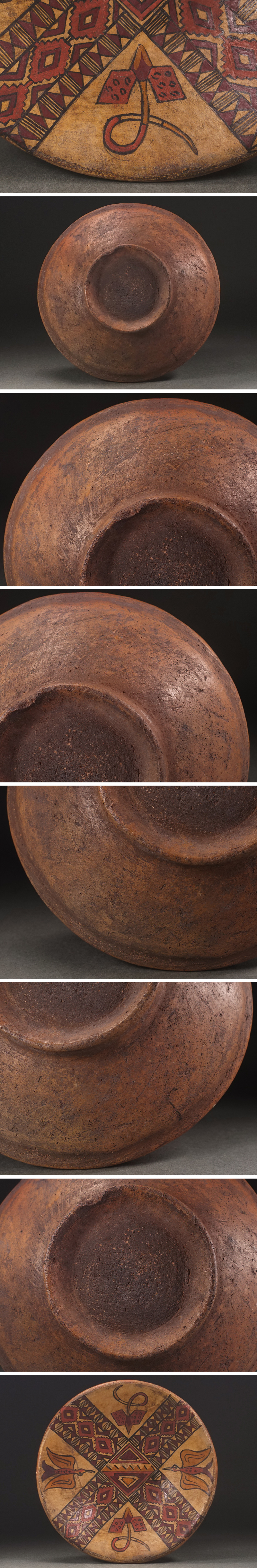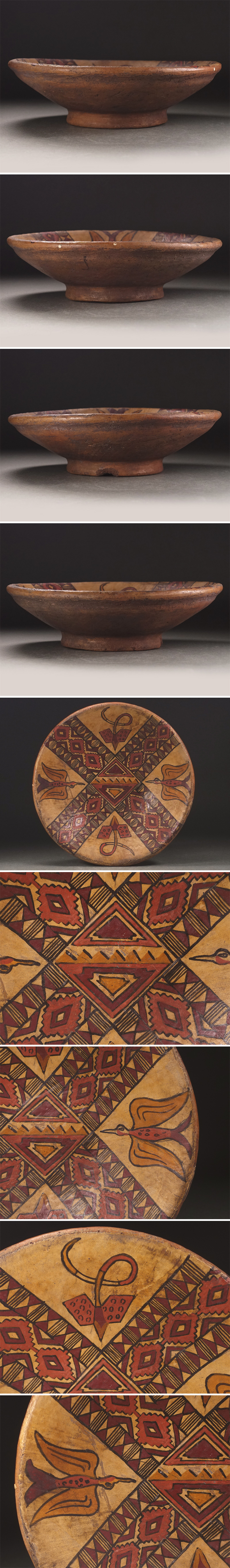 ∇花∇古代アンデス遺物 13~16世紀頃 ペルー・インカ文化 彩文土器 加彩鳥文皿 收藏