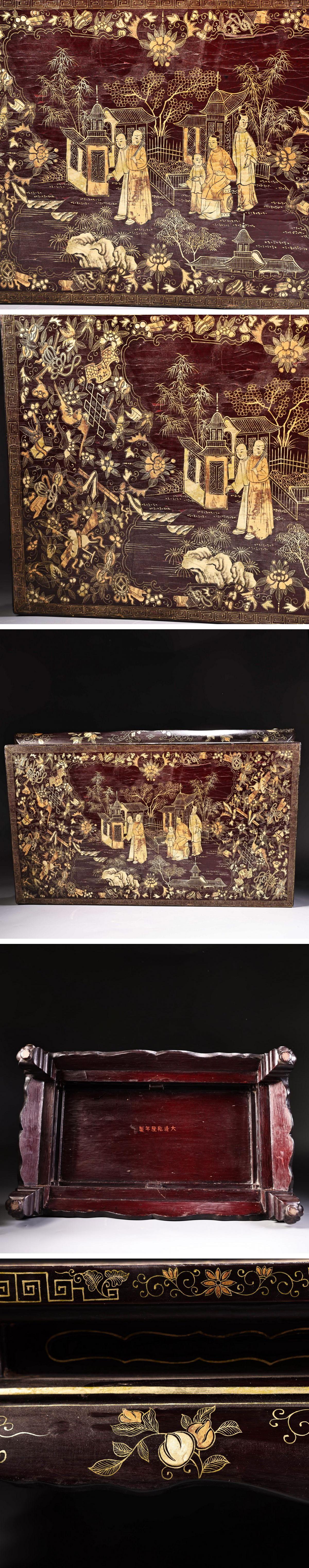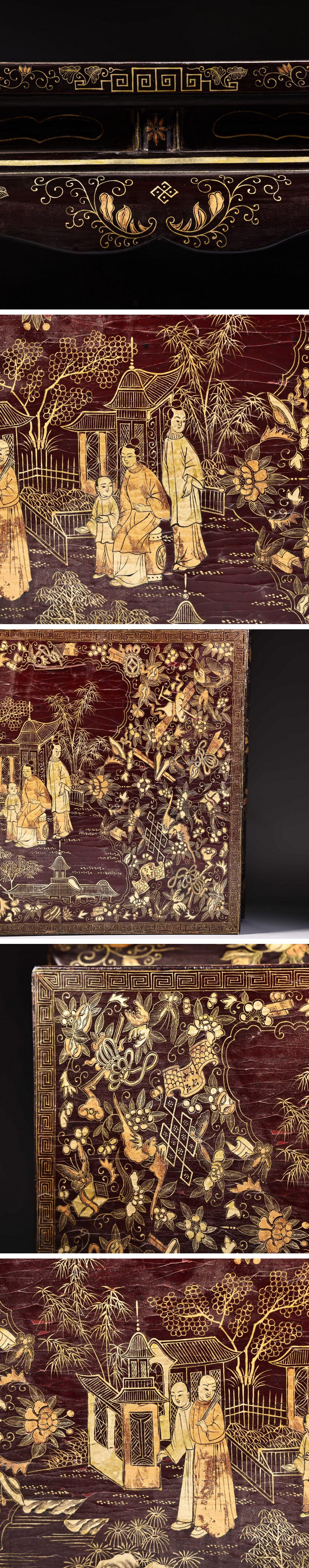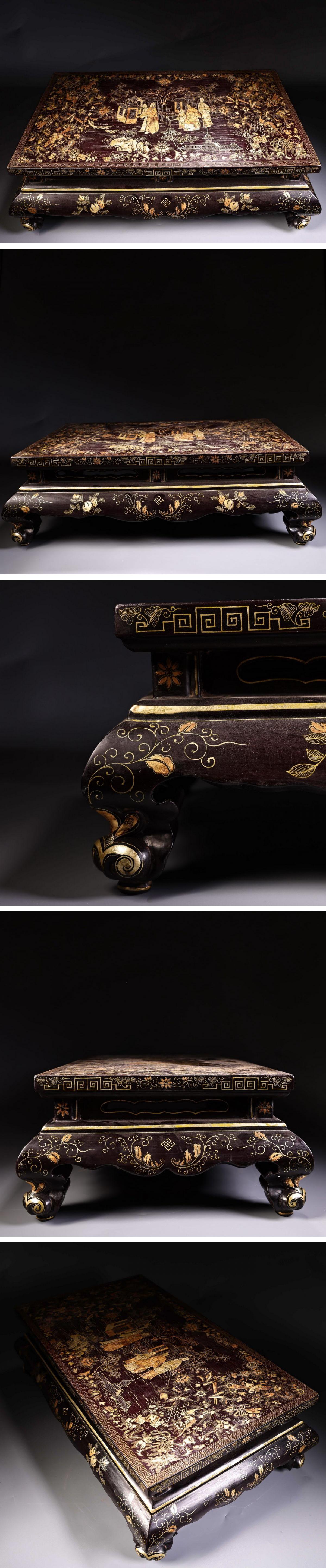 【清】某有名オークション購入 清時代 木胎 人物故事図金蒔絵茶台 古置物 古擺件 古美術 時代コレクション7L9-POS8 收藏
