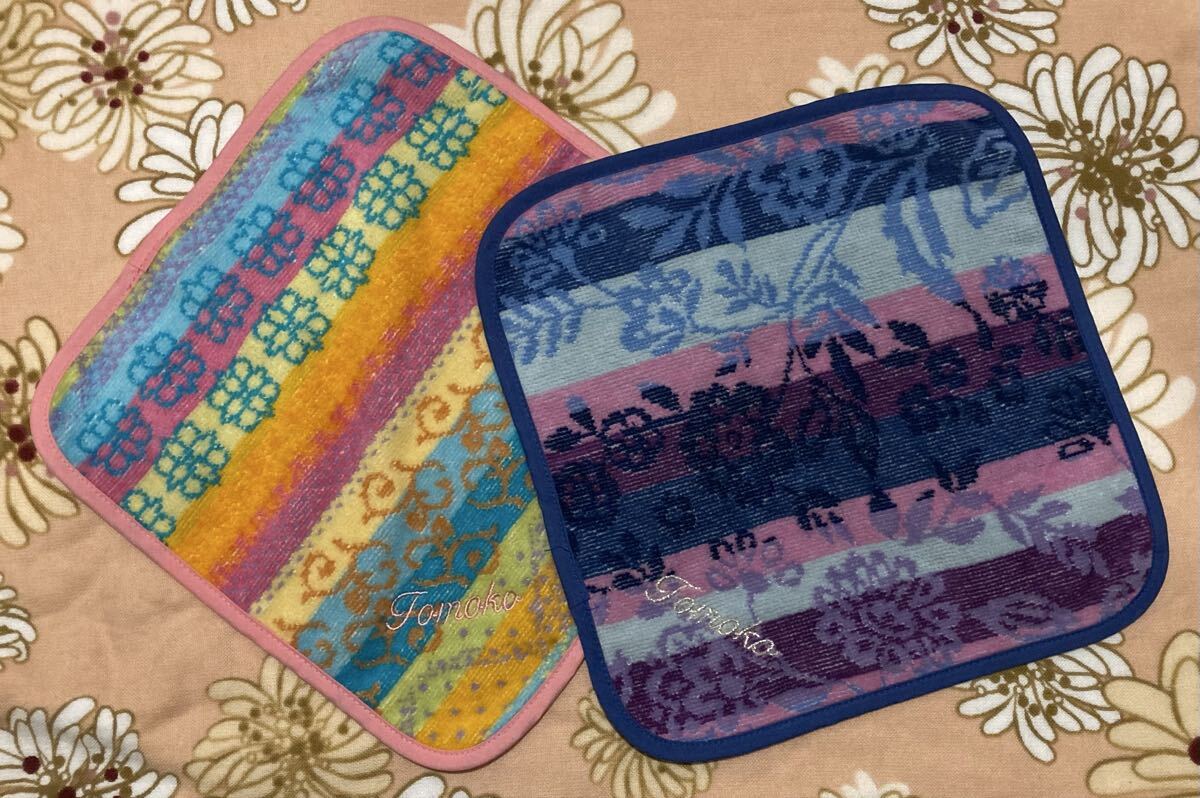再↓新品未使用★カラカラ商事★人気カラフル可愛いお花柄コットンタオルハンカチ 2枚セット 日本製 ネーム入り tomoko 收藏