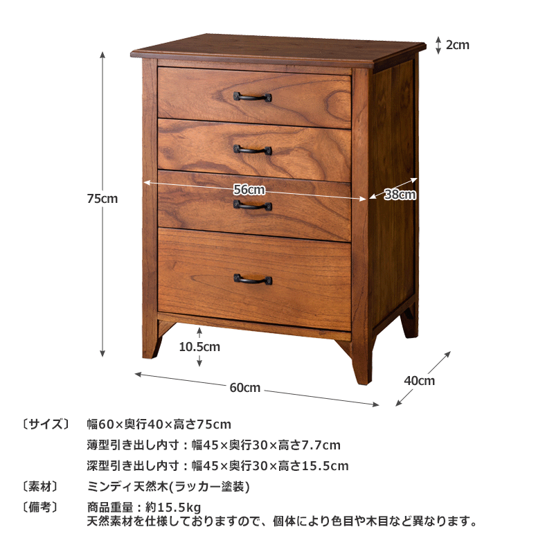 深型引き出し内寸:幅45×奥行30×高さ15.5cm
