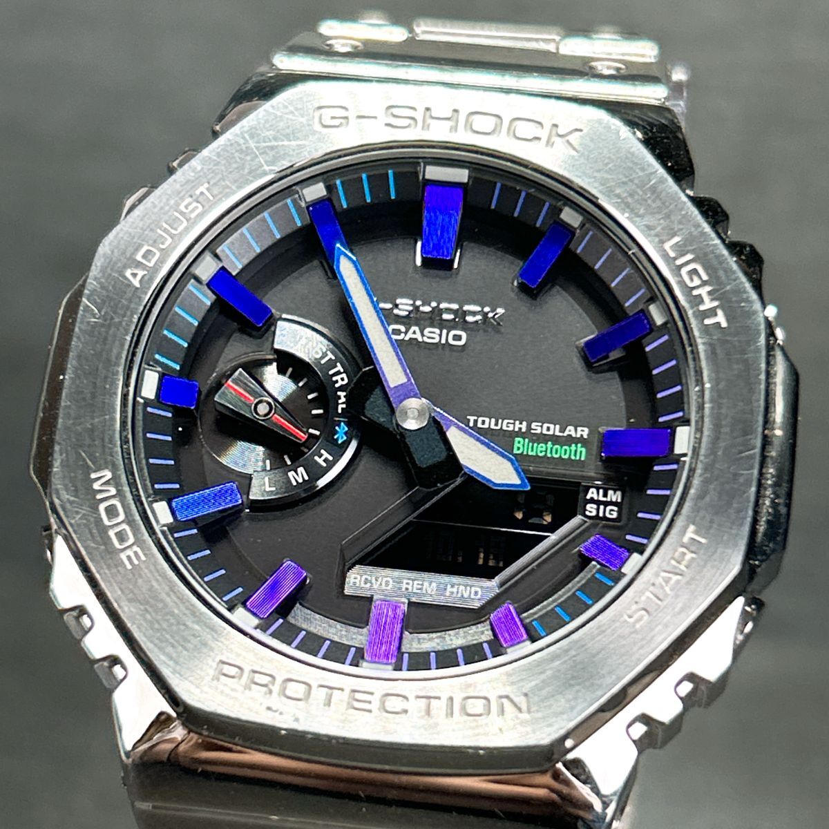 超美品 CASIO カシオ G-SHOCK ジーショック フルメタル GM-B2100PC-1AJF 腕時計 電波ソーラー アナデジ Bluetooth ブルー パープル 動作OK 收藏