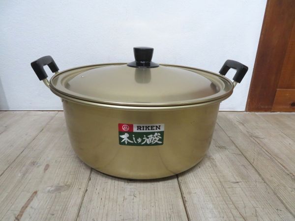 【中古/使用頻度=少】 RIKEN 本しゅう酸 両手鍋 36cm 検索用⇒ 昭和レトロ/アルミニウム/アルマイト/大鍋/炊き出し/おでん/業務用/F1019 收藏