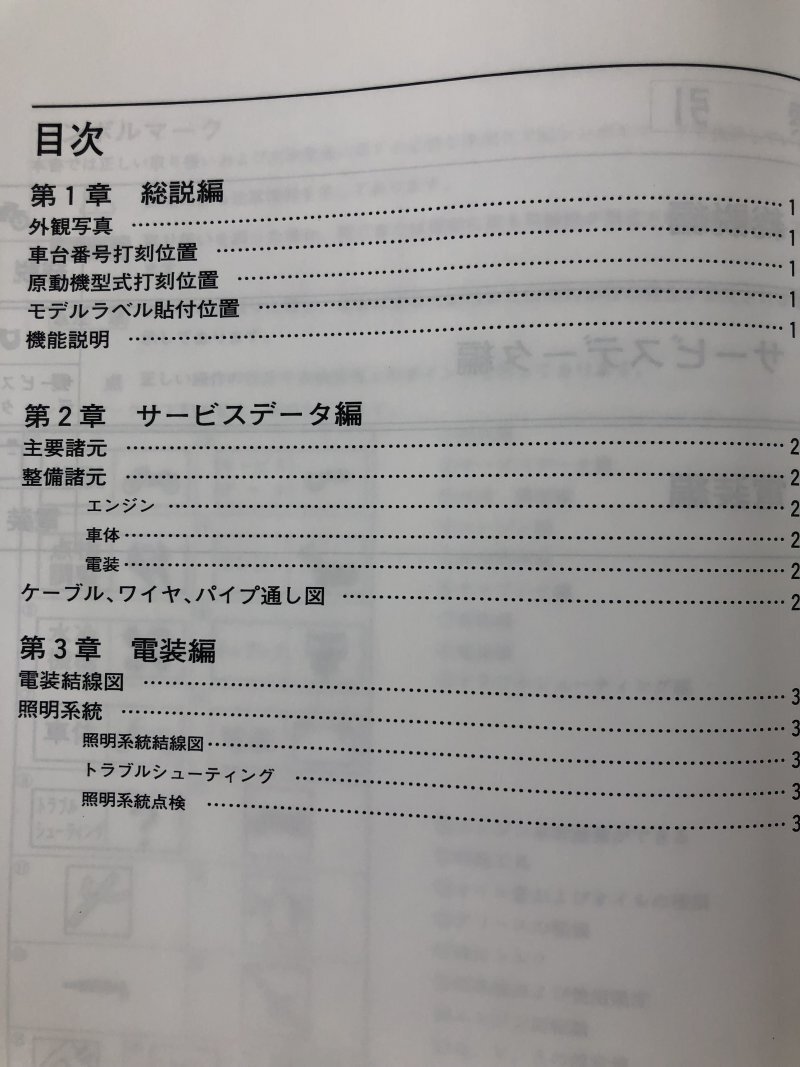サービスマニュアルには、通常おこなう点検、調整をはじめ、主要部の分解点検、組立整備要領が説明されております。