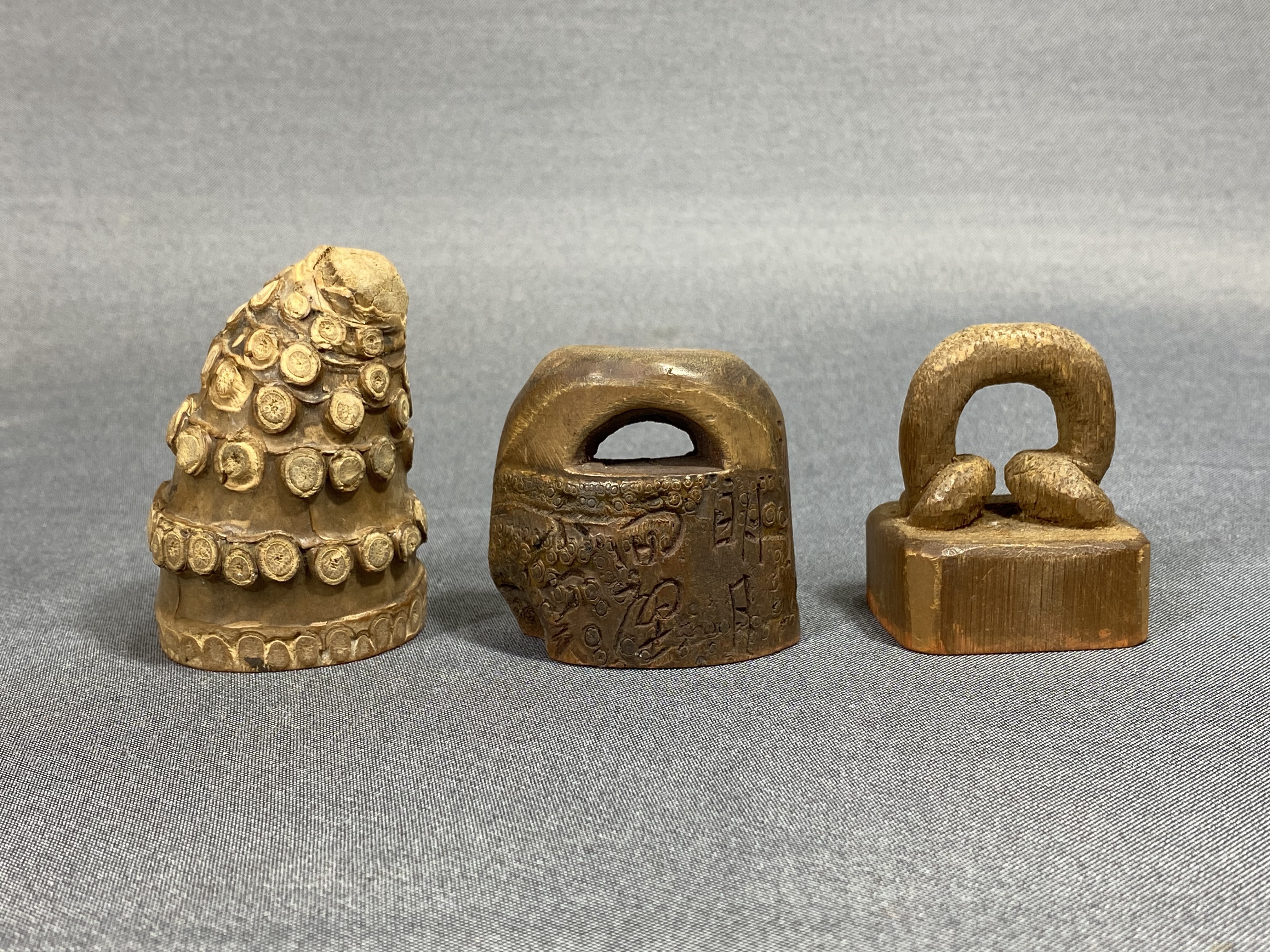 【風車】 江戸時代 竹刻 印鑑3点 印章▲文房具 金石書画印章▲篆刻 彫刻 書道 古美術 收藏