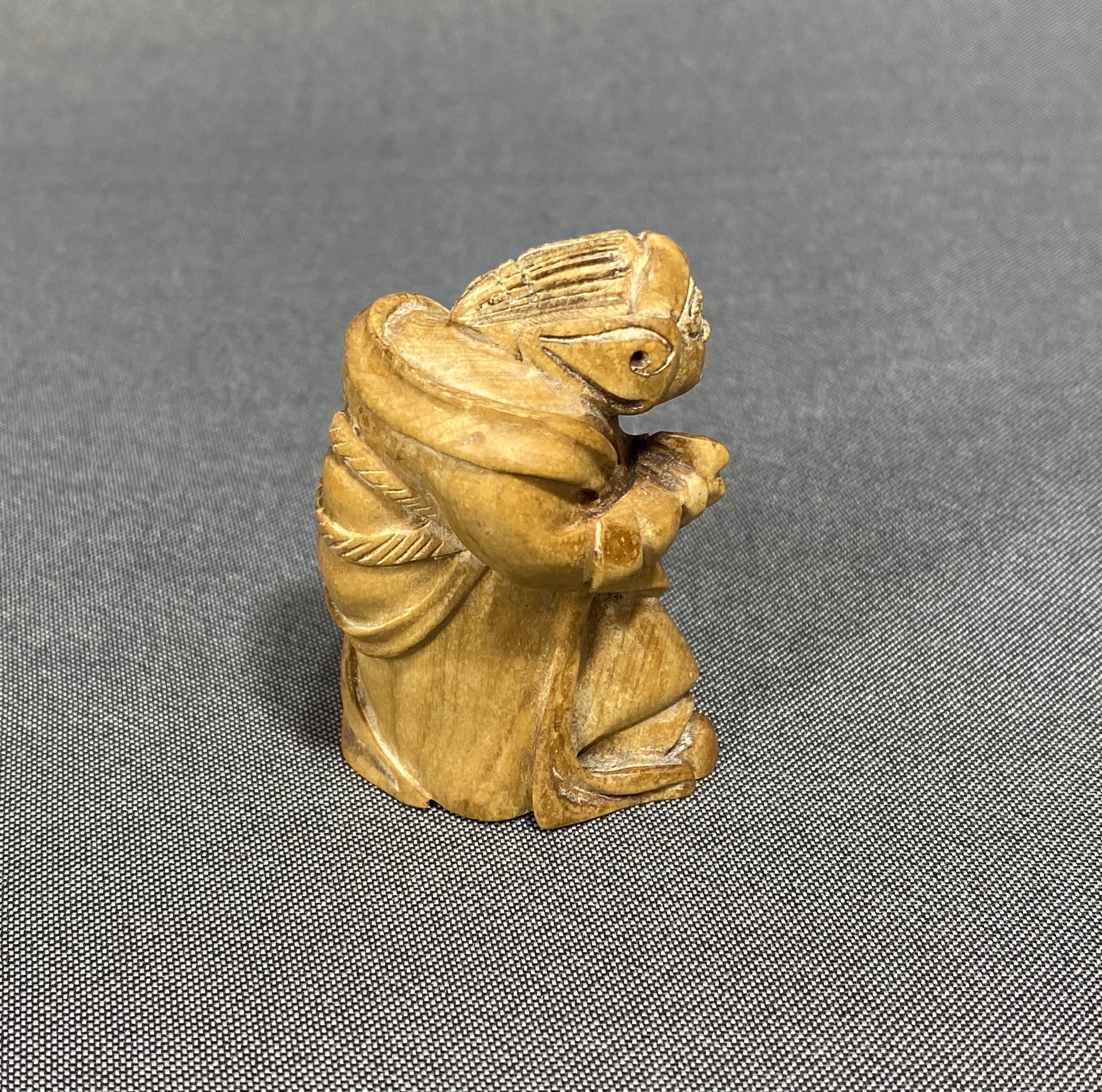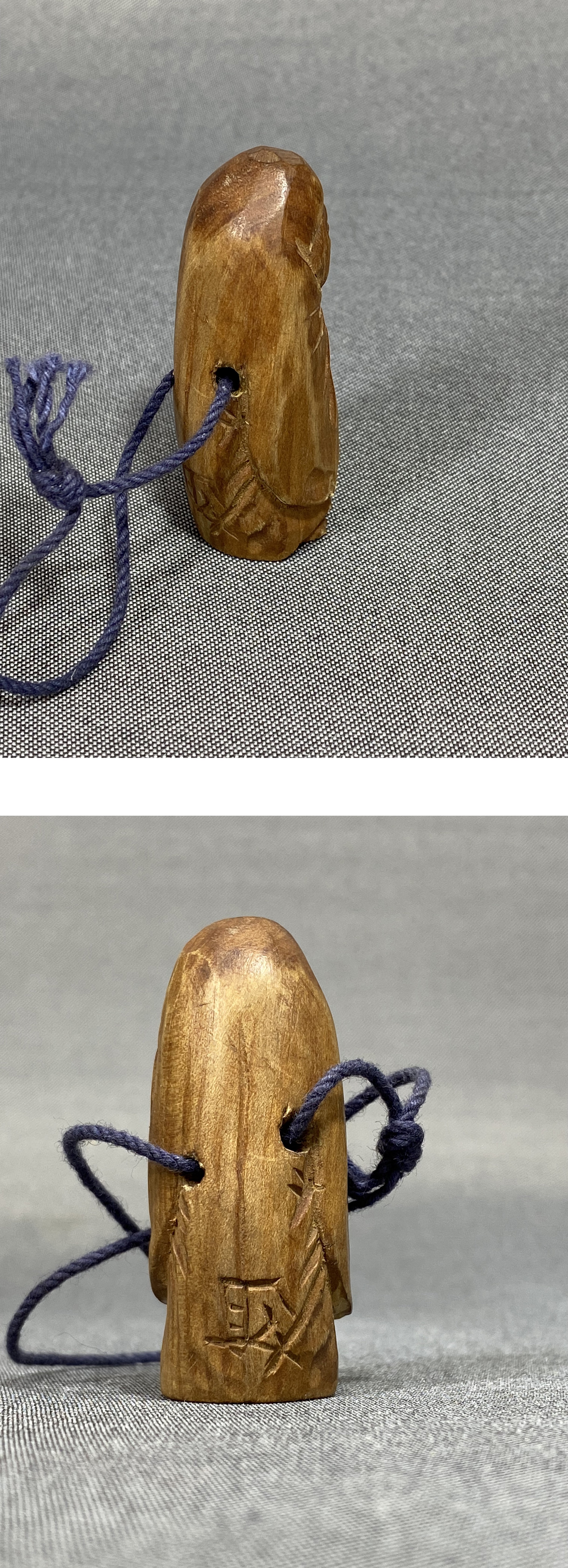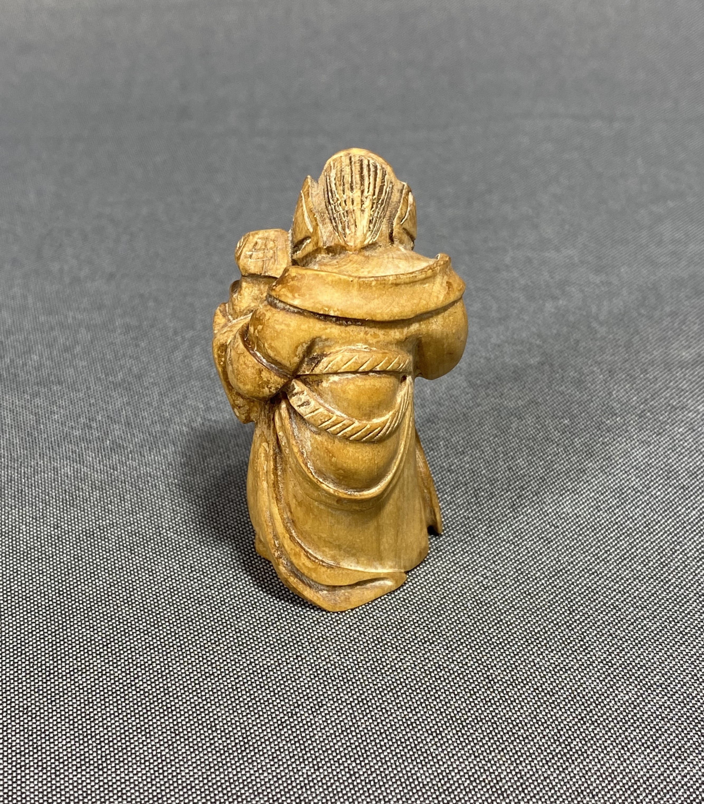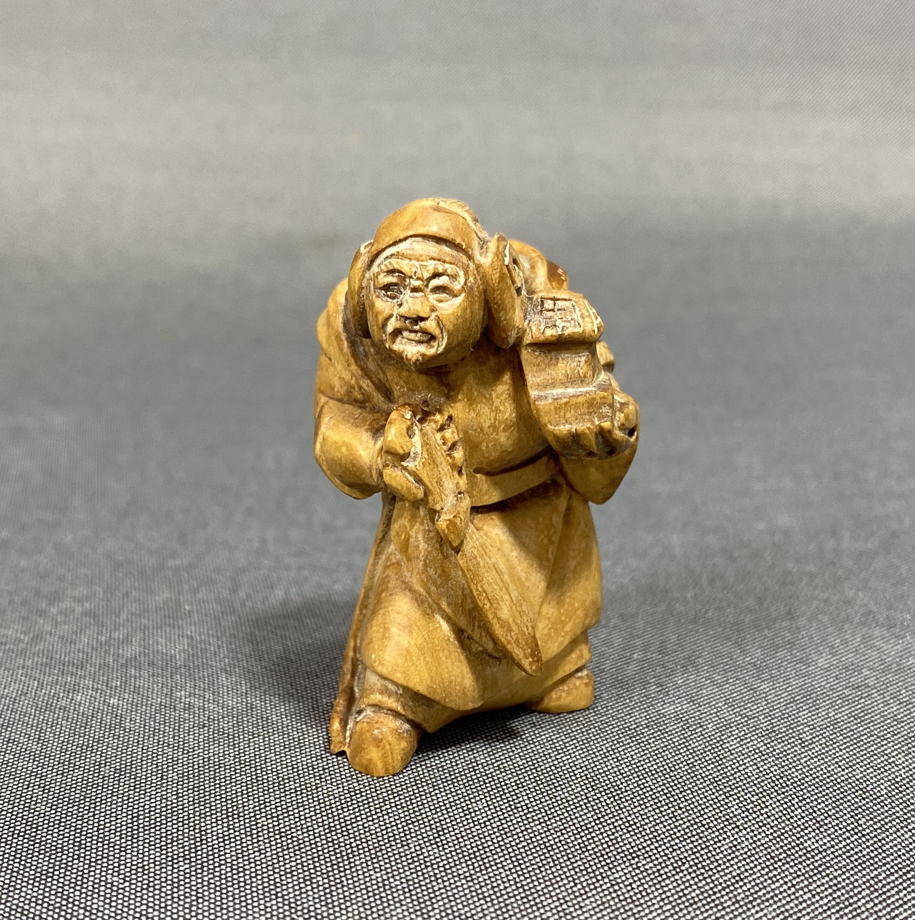 【風車】 吉川刀 木彫 天王 達磨 根付2点 ▲在銘 黄楊木 茶道具▲秀逸作 收藏