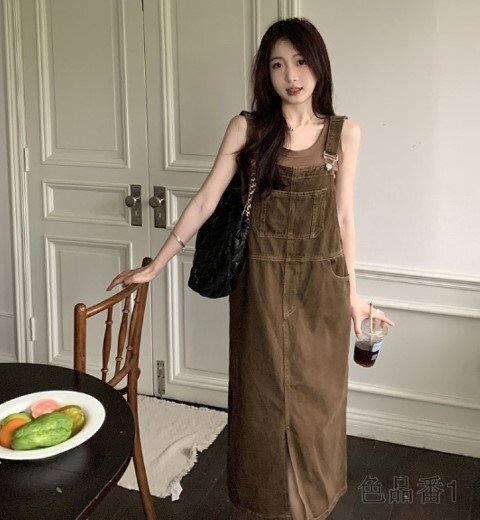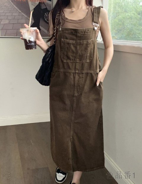 デニムワンピ ノースリーブワンピ ロングワンピ デニム カジュアル シンプル ジャンパースカート【大きいサイズあり】 S ワンカラー 收藏