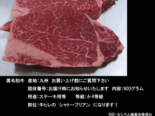 〓牛宗  黒毛和牛〓バーゲン価格 シャトーブリアン 900g
