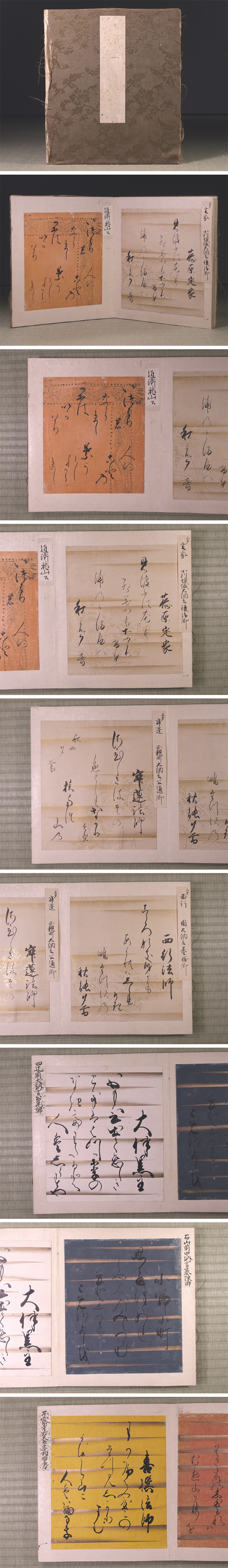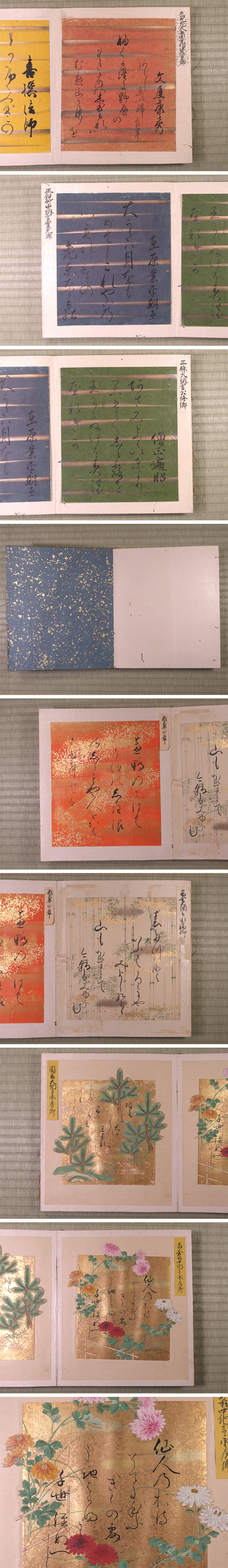 ∇花∇江戸時代初期~後期の名だたる公家衆御染筆 近衛前久ら関白・大納言著名大家の古筆切集 古筆手鑑 墨蹟和歌色紙帖 全十七葉収録 收藏