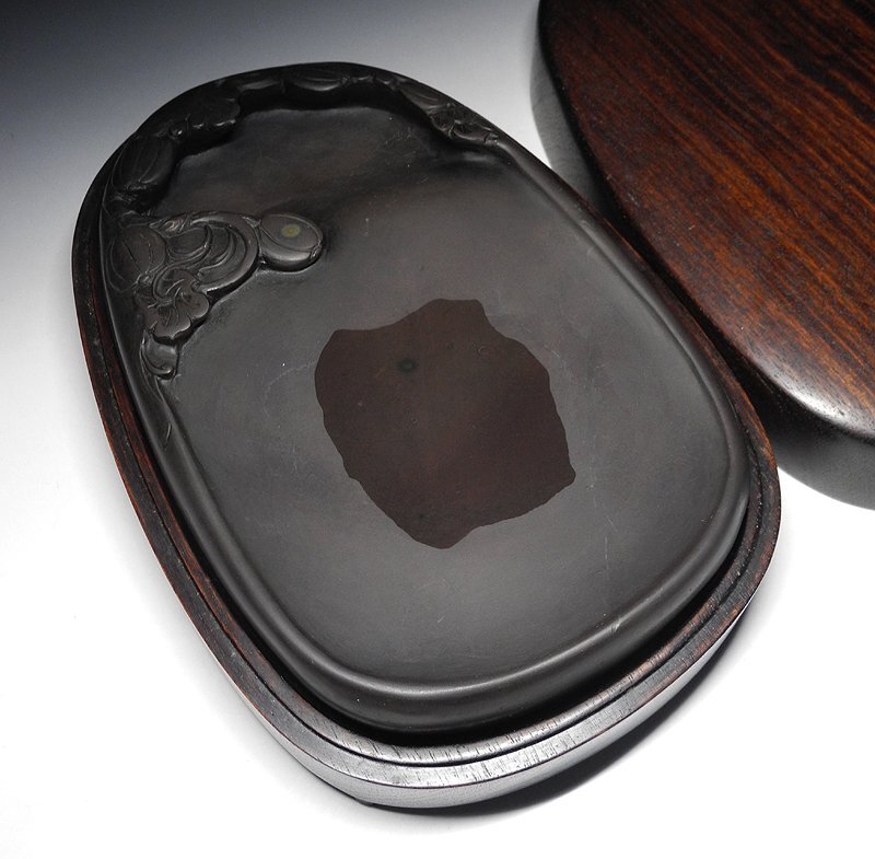 緑屋i■ 中国古玩 老坑 端渓硯 唐木蓋台 唐物 時代物 i9/1028-6/29-7#80 收藏