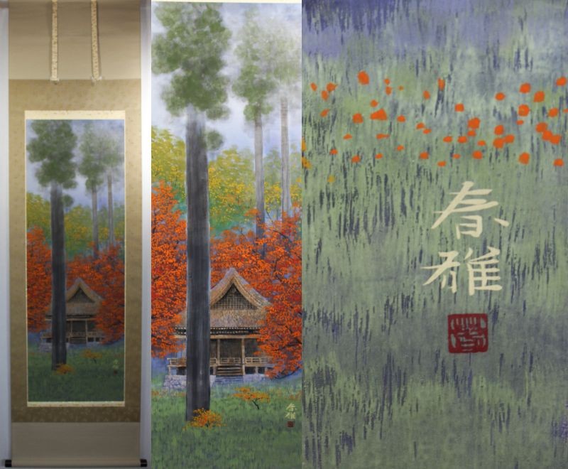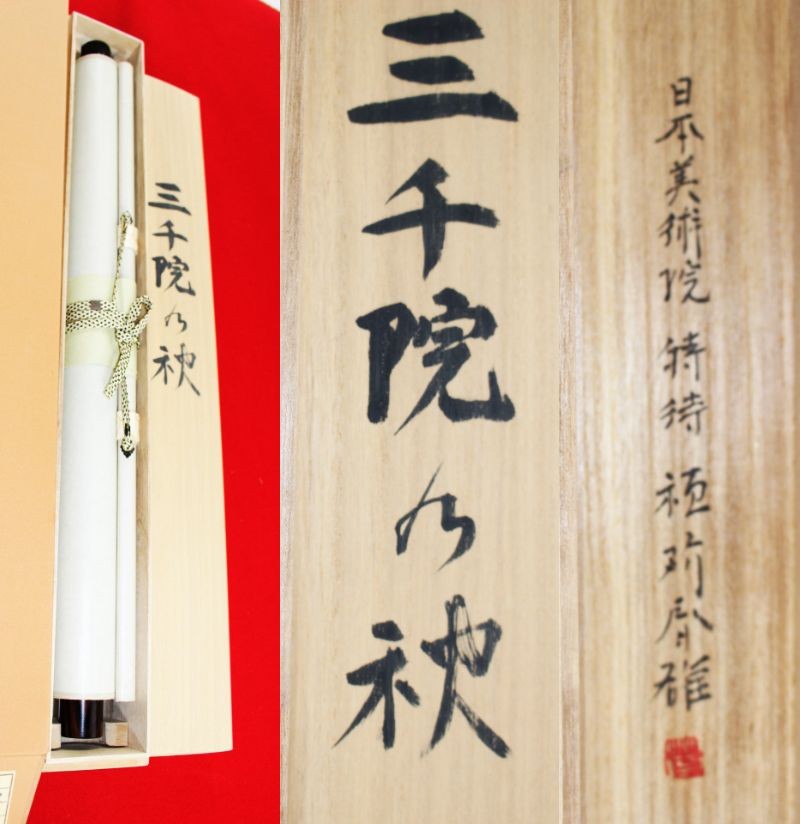 《真作》穂刈 春雄【三千院乃秋】*共箱.掛軸*師 今野忠一.番場春雄*日本美術院特待.奨励賞.足立美術館賞*文部科学大臣*新潟.物故*[桃 收藏