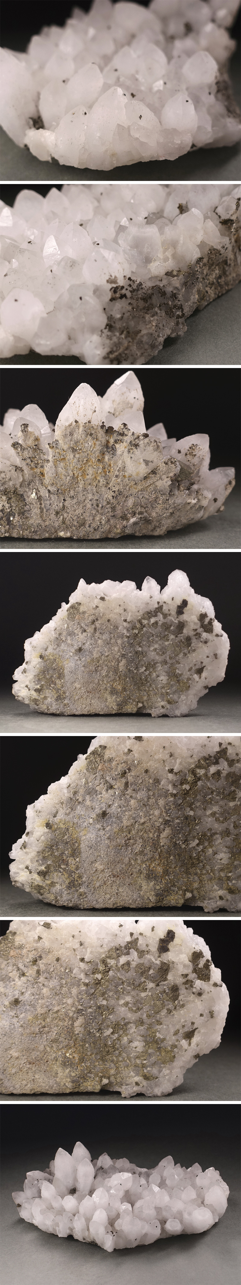 ∇花∇天然水晶原石 クォーツ・クラスター パイライト(黄鉄鉱)共生 幅15.5×10.2cm/重量658g 鉱物 天然石 宝石置物 群晶 H 收藏