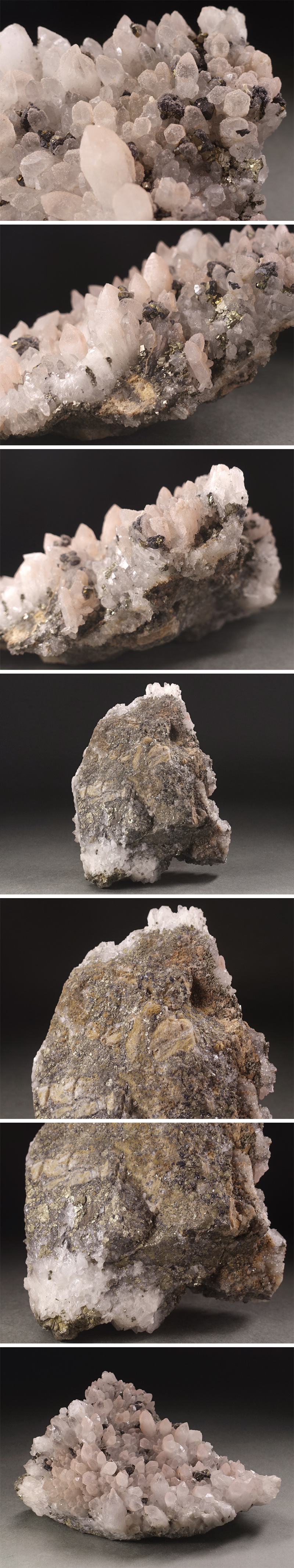 ∇花∇天然水晶原石 クォーツ・クラスター パイライト・スファレライト共生 幅16.9×13.1cm/重量1203g 鉱物 天然石 宝石置物 群晶 黄鉄鉱 O 收藏