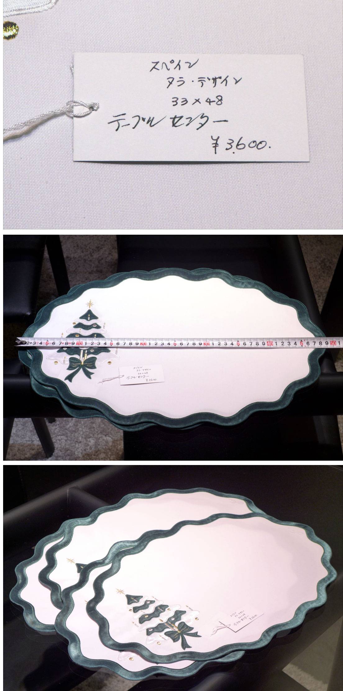 e未使用 スペイン製 Tara タラ デザイン クリスマスツリー柄 テーブルセンター 4点まとめて。