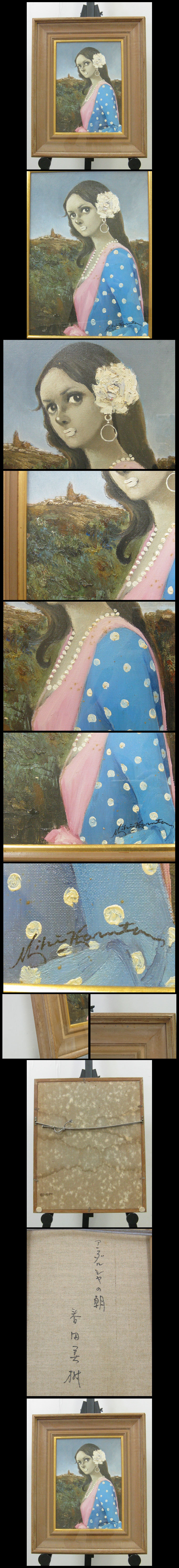 【心庵】額装 春田美樹「アルダルシヤの朝」女性図 美人画 F4号/油彩 真作 師 東郷青児 B597 收藏