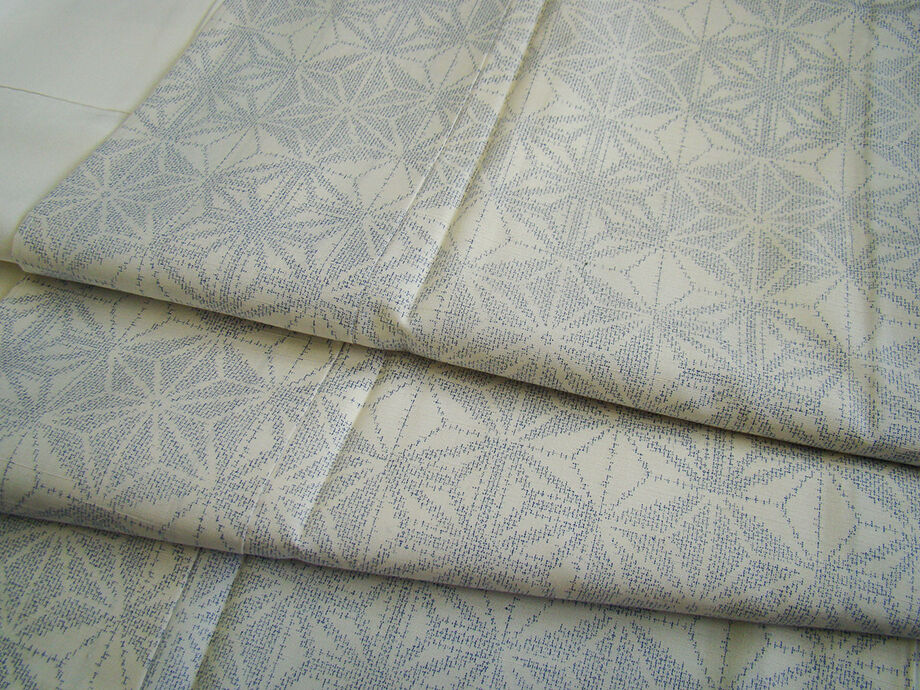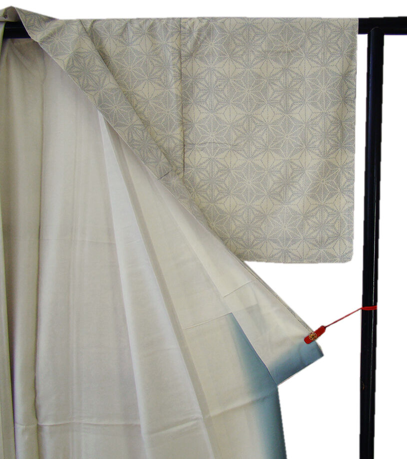 | 商品説明 | こちらのお品は「袷」ですので10月から5月までお召頂ければと思います。 しなやかな紬は、着易く動きも軽く、着くずれしない腰の強さを併せ持った お洒落着としていつでもどこへでもお気軽にお愉しみ頂けご愛用頂けるお品です。 しなやかな手触りのシャリやハリ感ある肌触りも心地よい柔らかな紬地、 象牙色地に薄い紺色の星柄の織柄、 八掛は灰青色(正絹)、幅広い年代の方にお召頂けます。 |