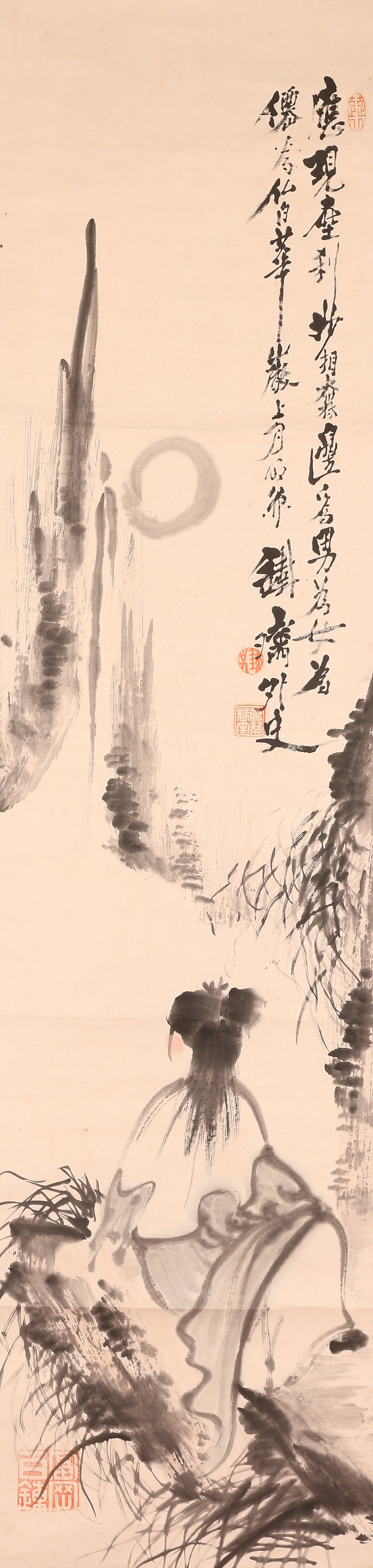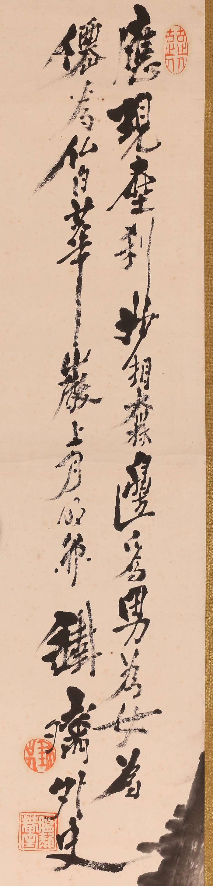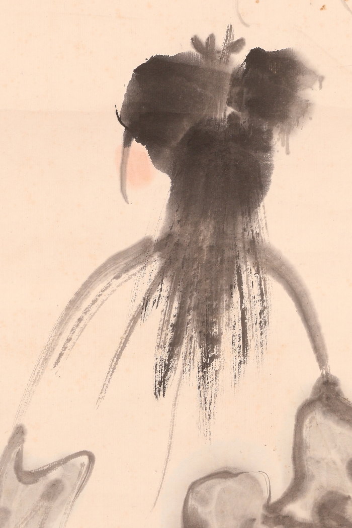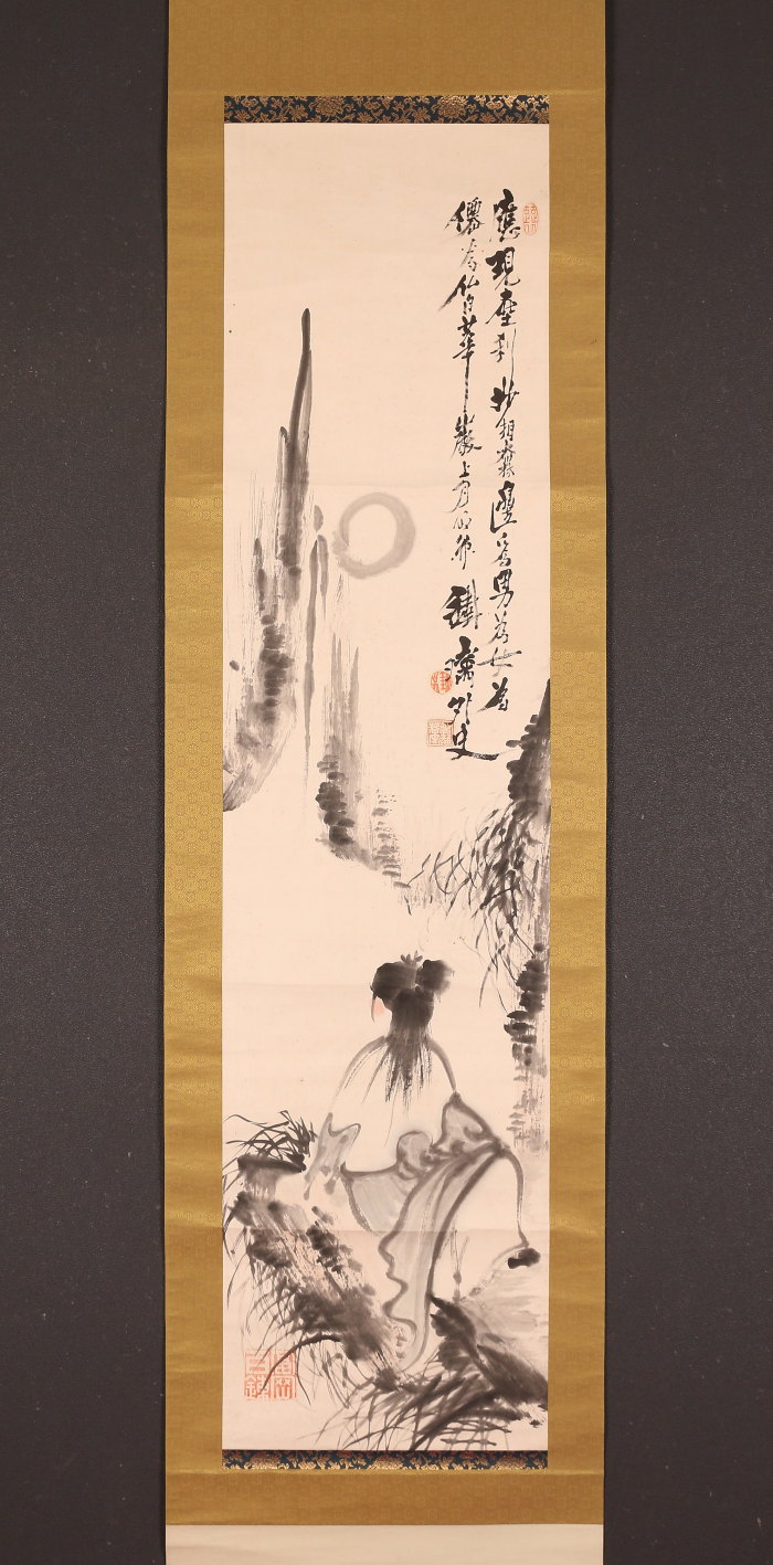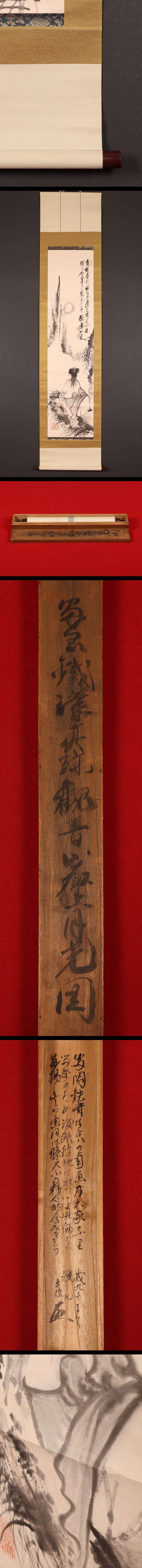 【模写】【伝来】am8166〈富岡鉄斎〉仏画 観音巌上月光画賛 極箱 最後の文人画家 京都の人 中国 收藏