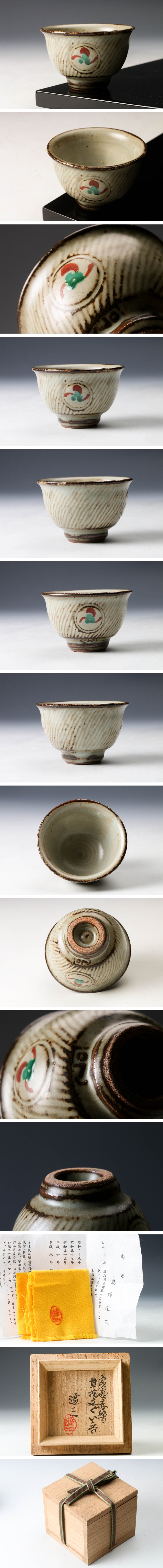 【佳香】人間国宝 島岡達三 象嵌赤絵草花文ぐい呑 共箱 共布 栞 本物保証 收藏