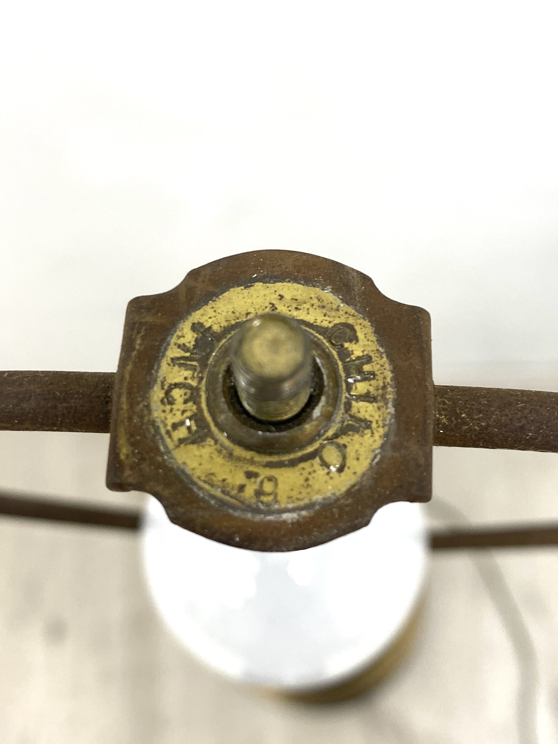60年代ヴィンテージ■テーブルランプ ブラスベース×布製シェード 高さ102cm 真鍮 彫刻 ゴールド ヨーロッパ アンティーク レトロ 卓上 金 收藏